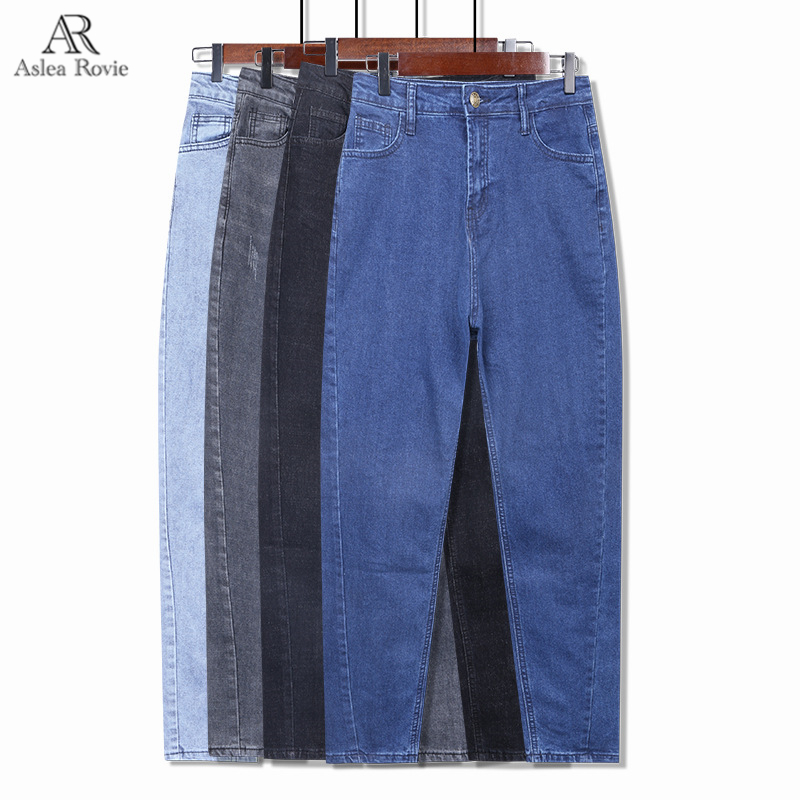 Jeans Woman High Waist Splice Plus Size Softener Zipper Mom Blue Black Full Length Denim Female Harem Pants 6xl 7xl 8xl