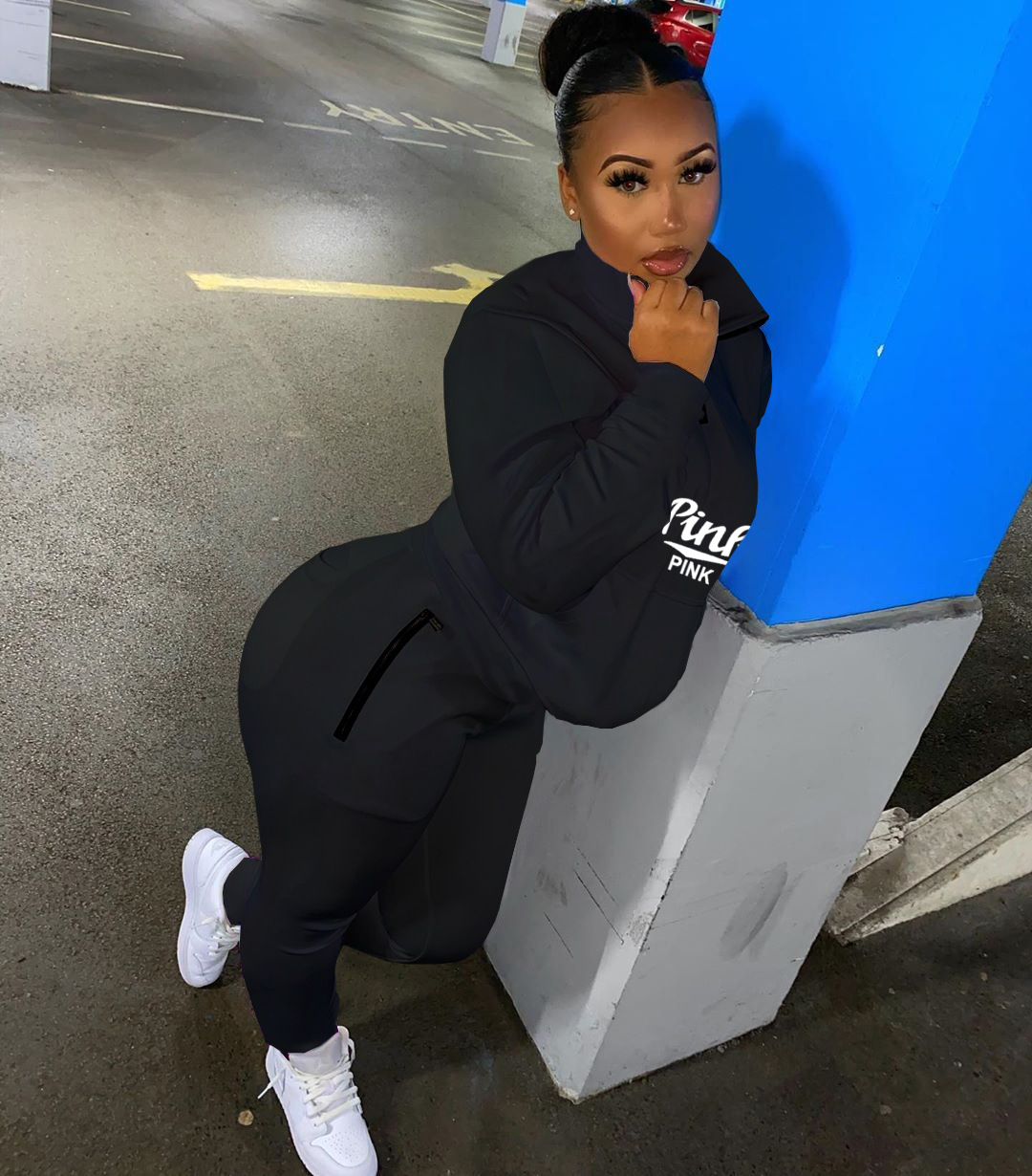 Joggers Gym Sports Workout Sweatsuit 2-Piece Sweat Sets Women Sweat Outfits Autumn Pink Printed Tracksuit Two Piece Joggeing Set