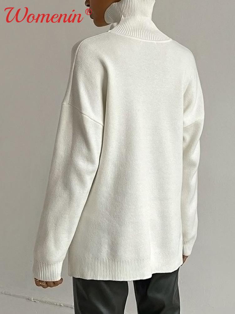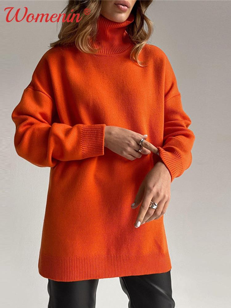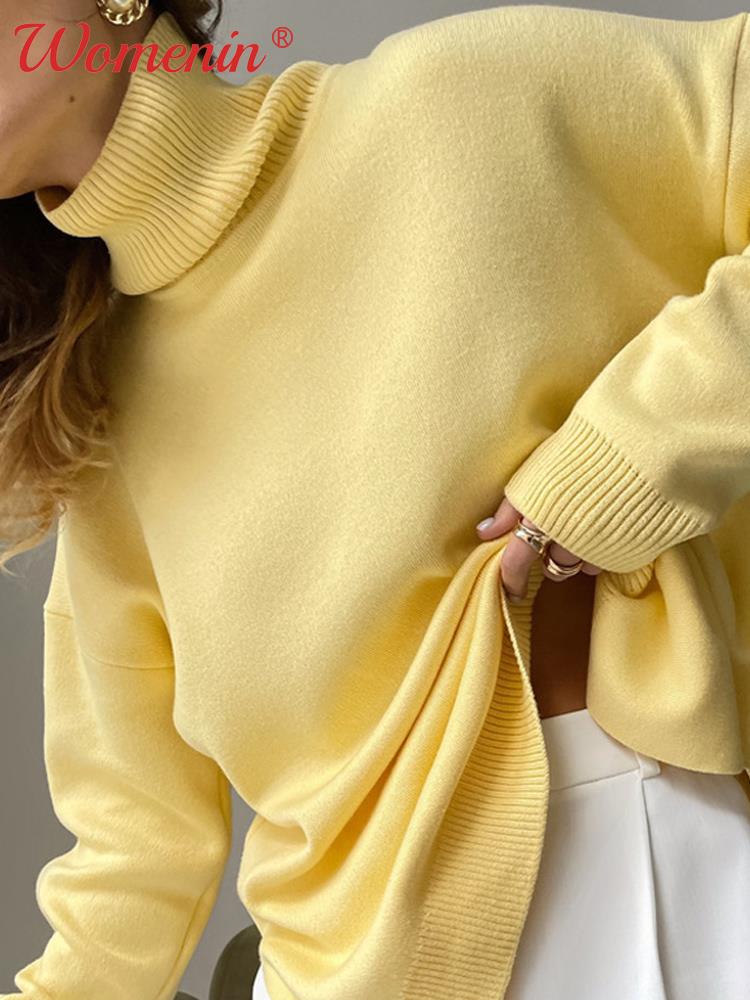 Knitted Loose Split Women's Turtleneck Sweater : Green Long Sleeve Warm Casual