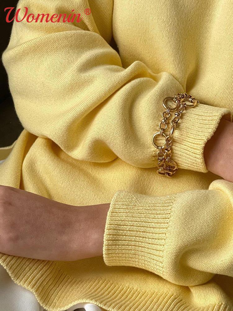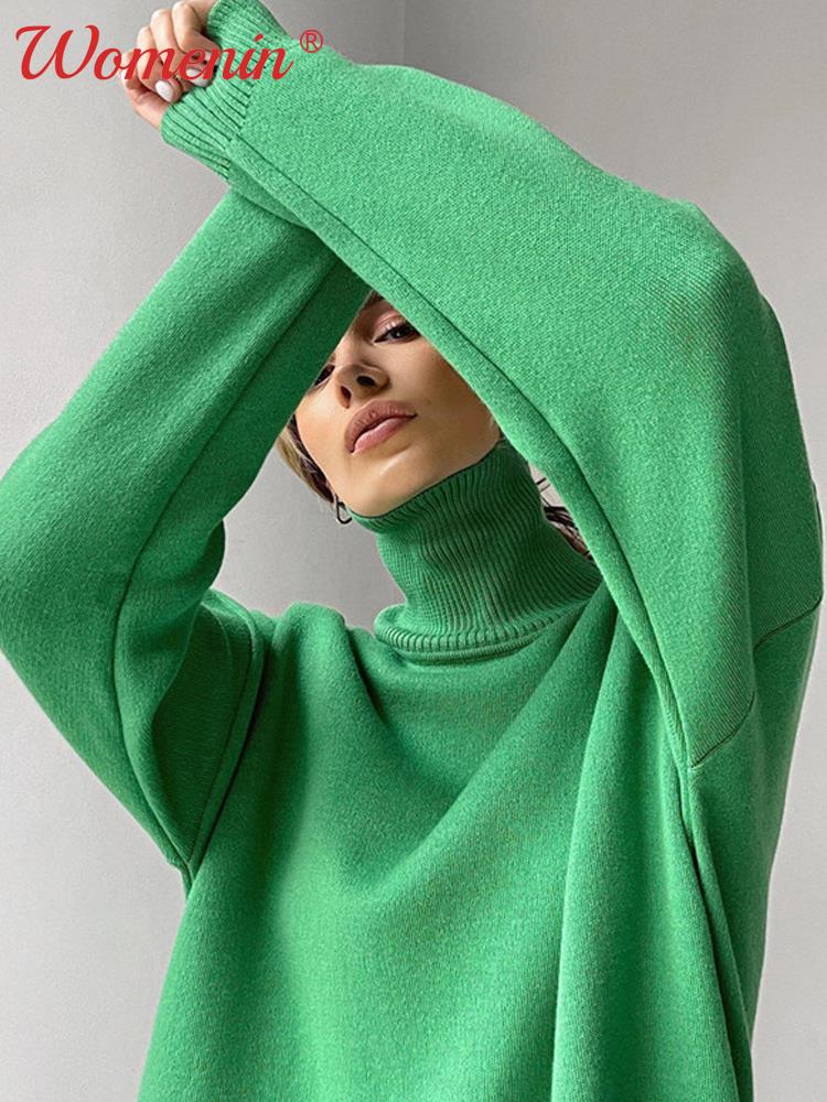 Green Long Sleeve Warm Casual Pullover : 2022 Autumn Winter Fashion Female Sweaters