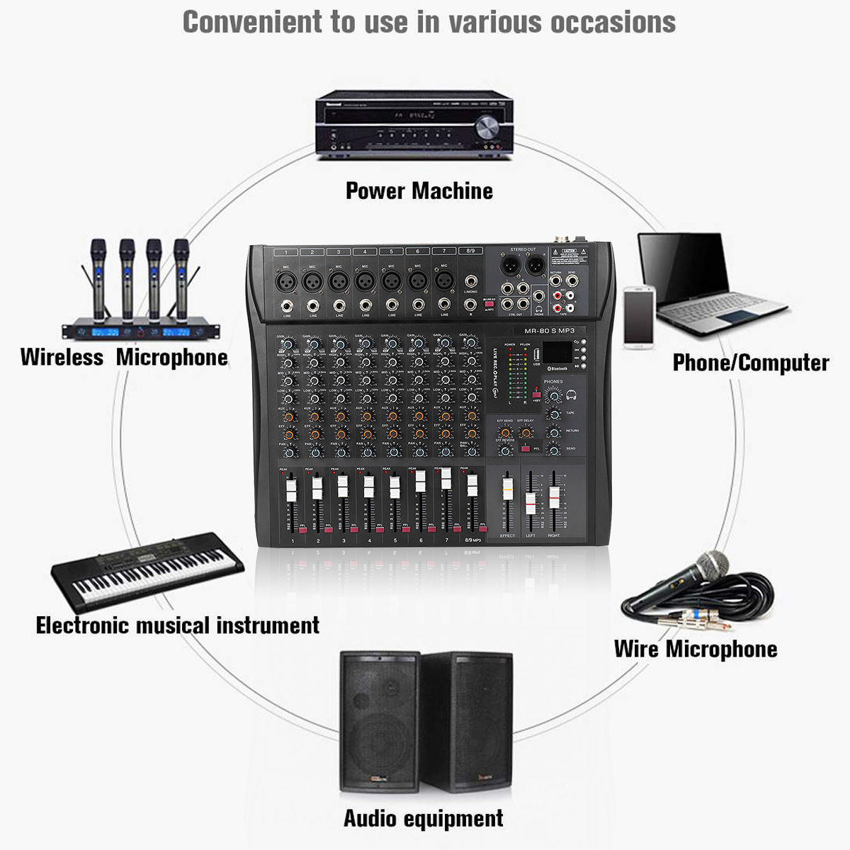 - The 7 channel microphone input interface, interface meticulous, stable transmission, less distortion.