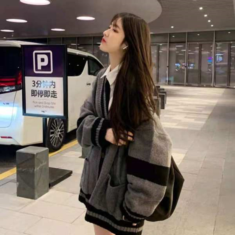 2021 autumn and winter new Korean version of the retro loose V-neck sweater cardigan jacket female student slim knit sweater top