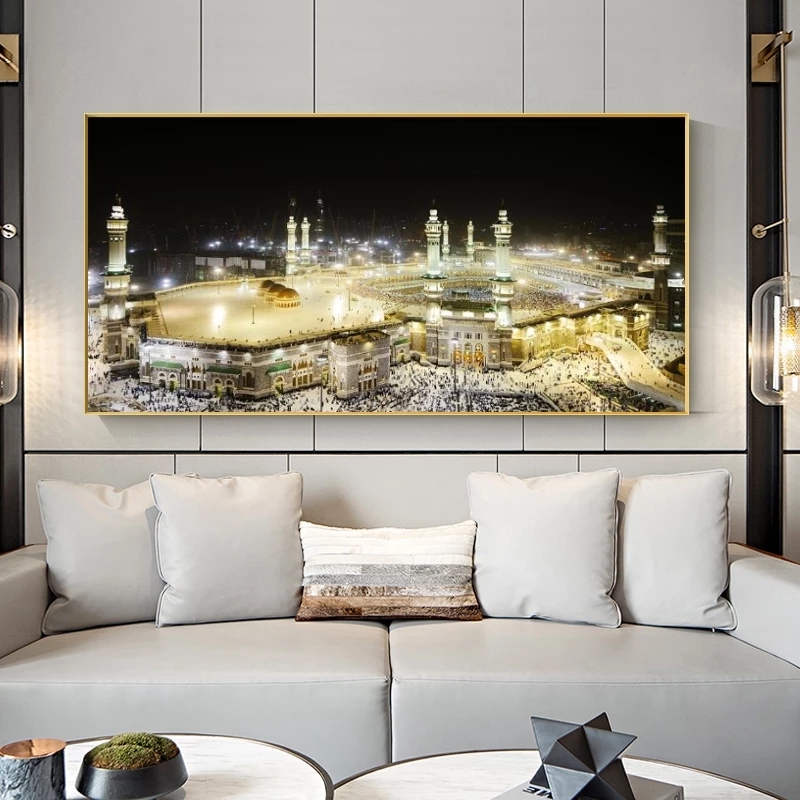 Mecca Mosque City Islamic Muslim Mural Canvas Painting Poster Family Interior Room Bedroom Wall Decoration Art (No Frame)