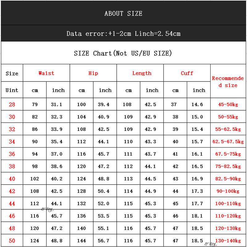 All sizes are table sizes, 1-3 cm error is allowed in the data.If you are not sure about the size, please let us know your weight, height and waistinfo ect. So we can help you select the correct format
