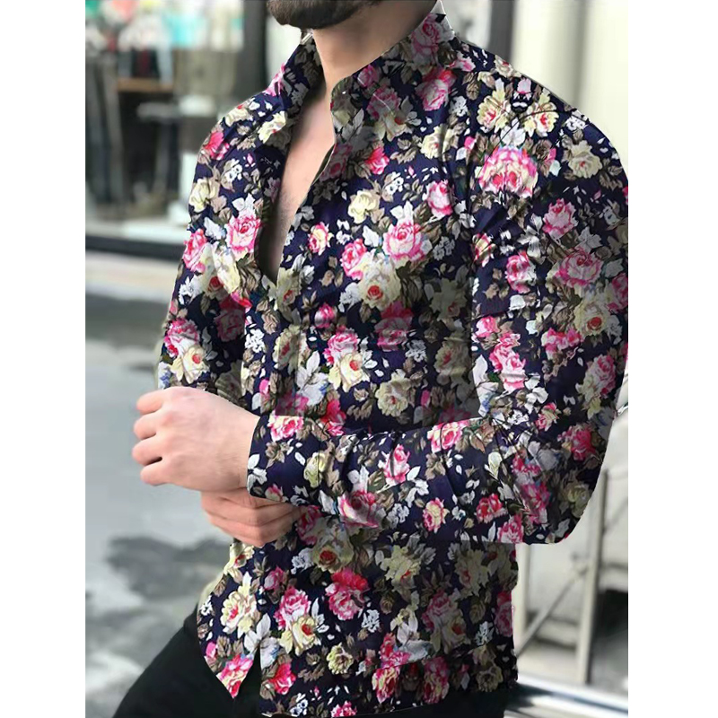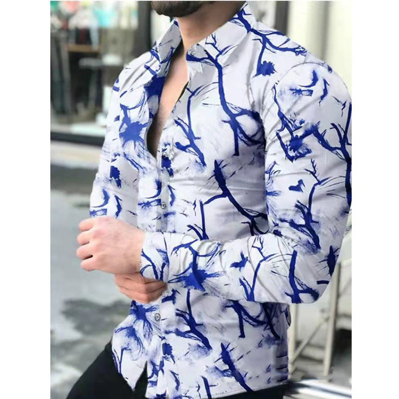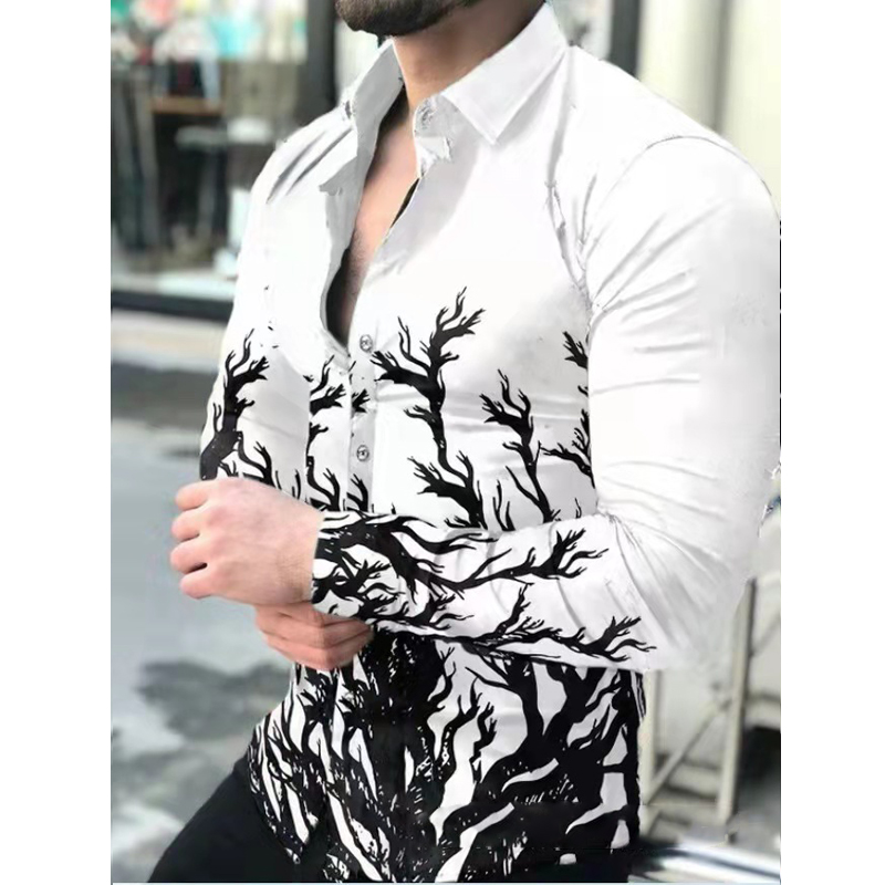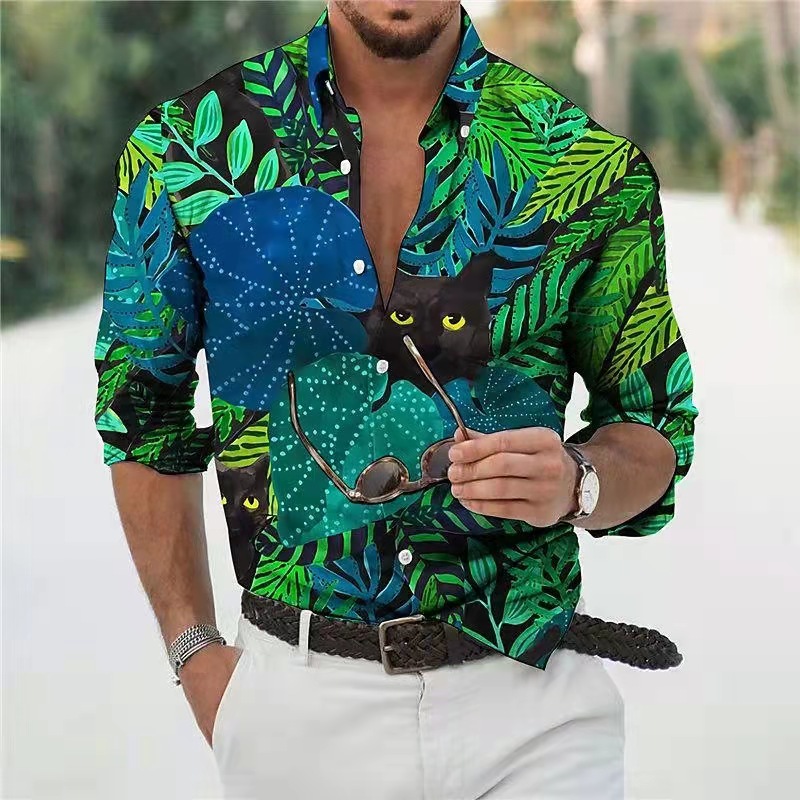 Men's Slim Shirts Spring Autumn Casual Lapel Street Animal 3D Printing Long Sleeve Oversized Shirts Men's Tops