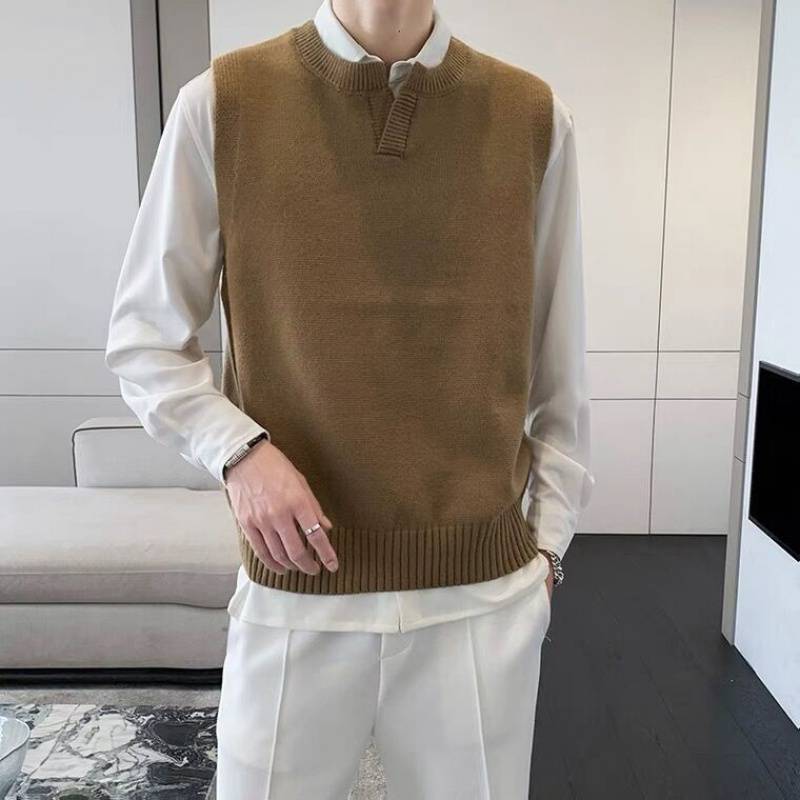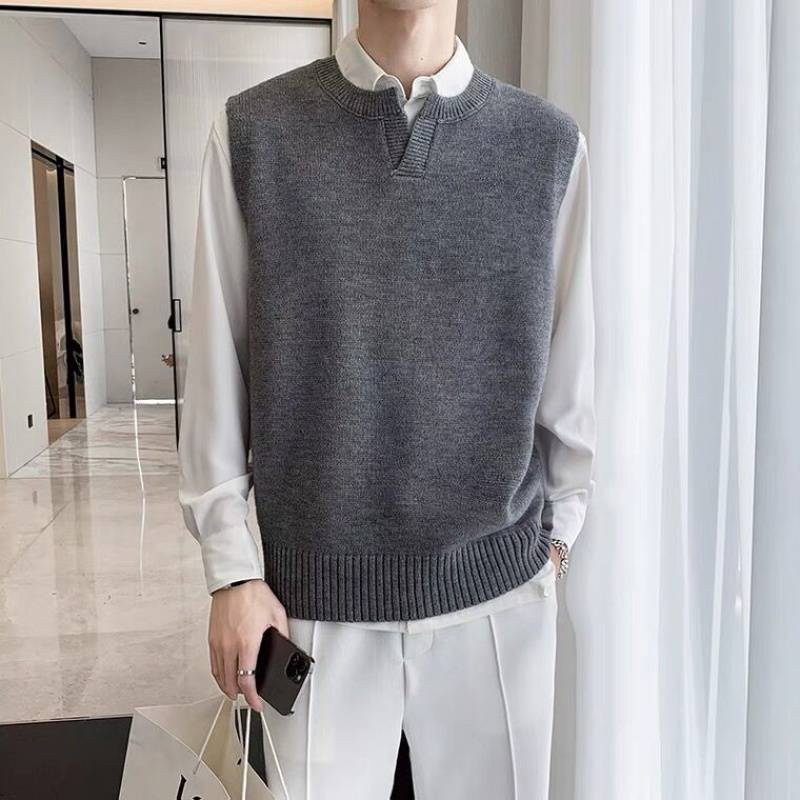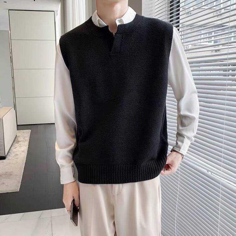 Men's Sweater Slim Sleeveless Vest Top Autumn Winter Casual Solid Color Waistcoat V Neck Knit Pullover Plus Size M-2XL