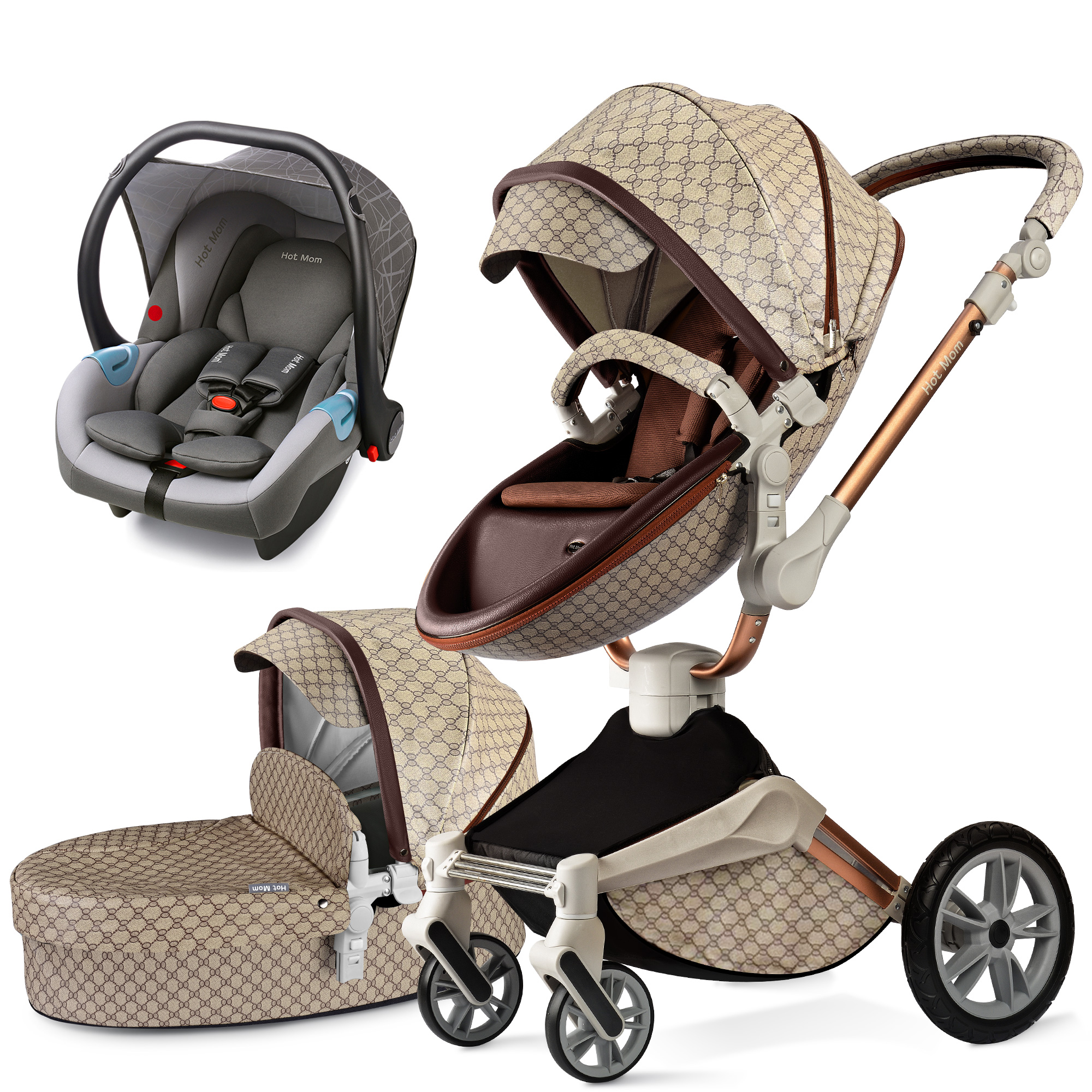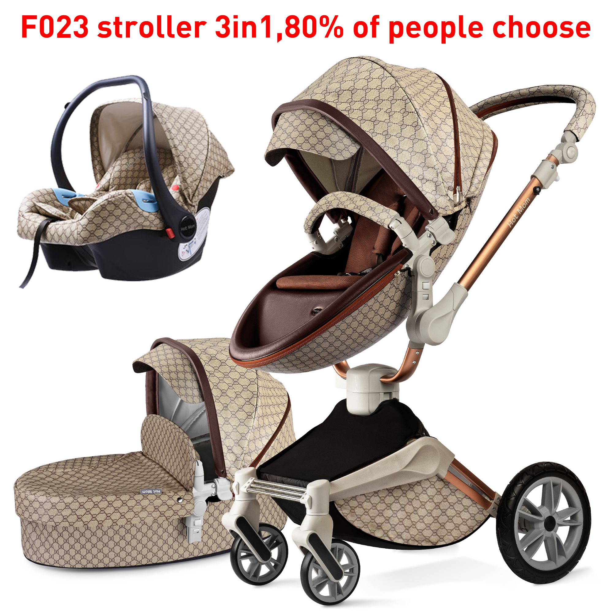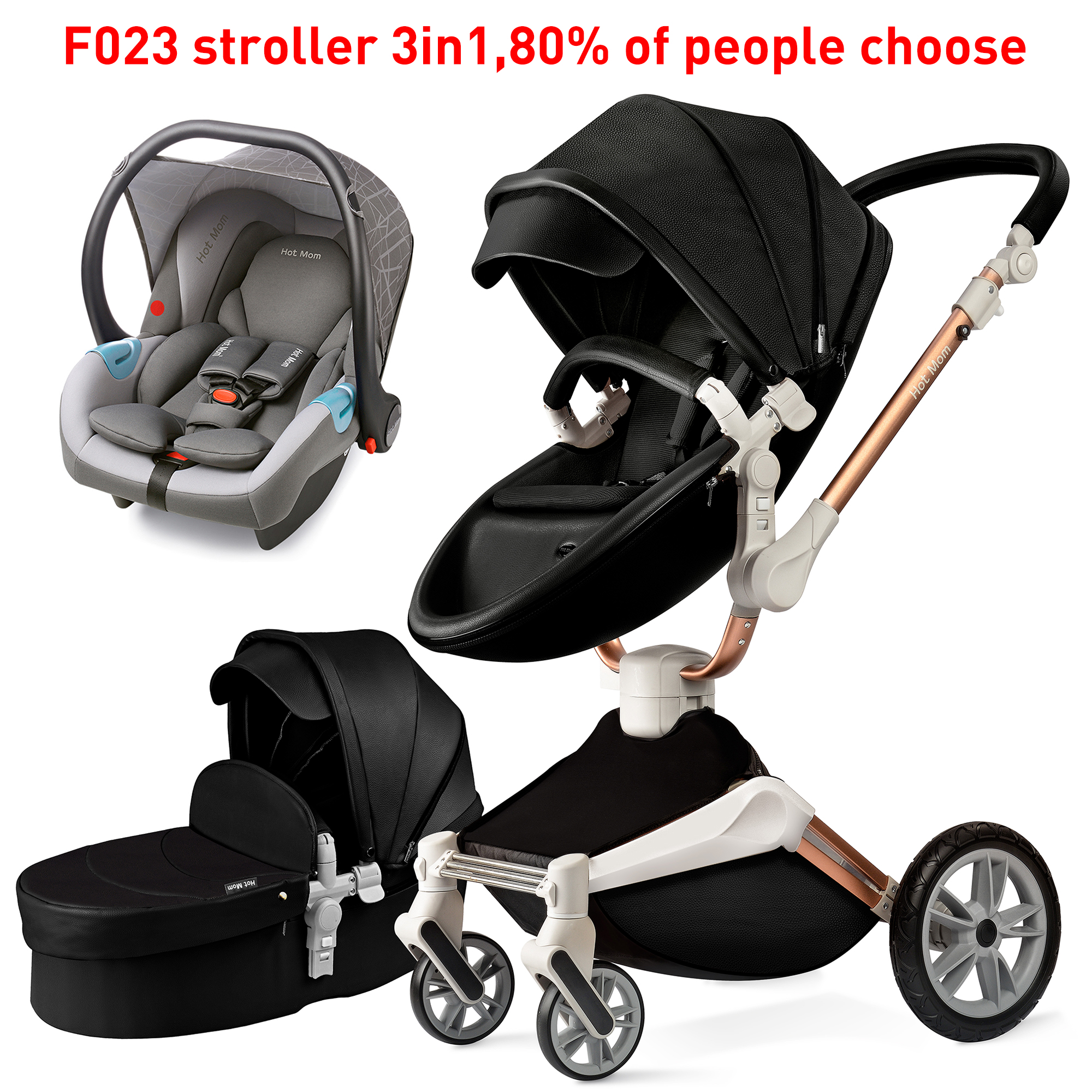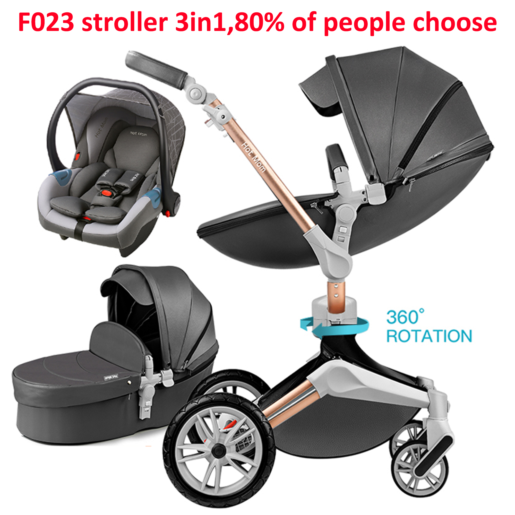 Mom Baby Stroller 3 in 1 travel system with bassinet and car seat,360° Rotation Function children stroller, Pram F023