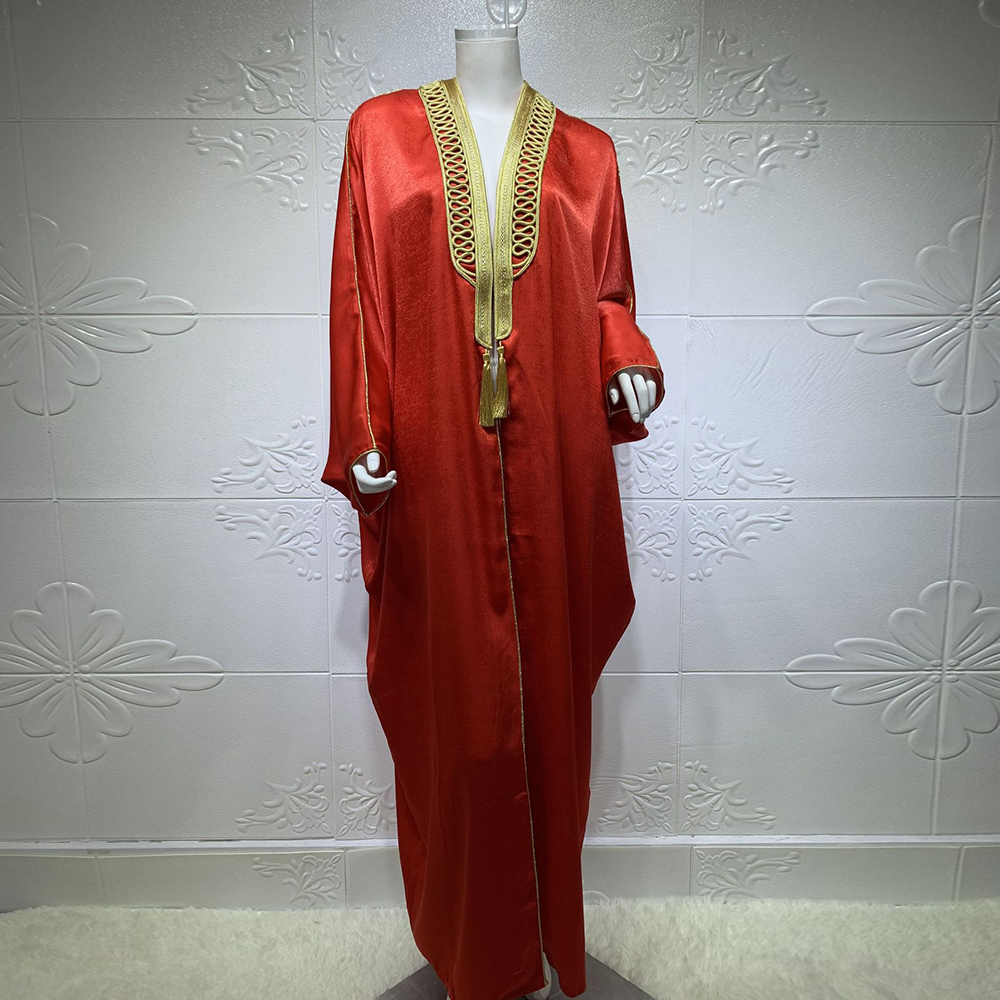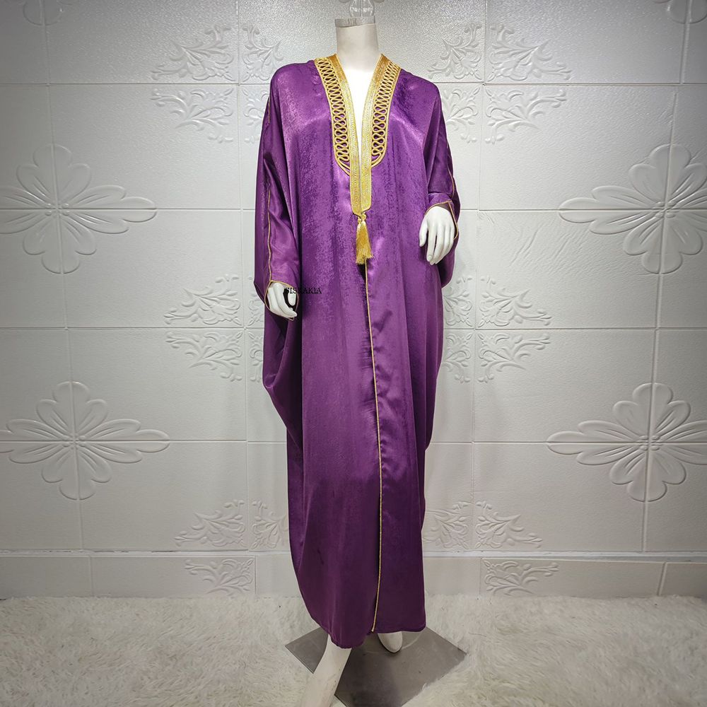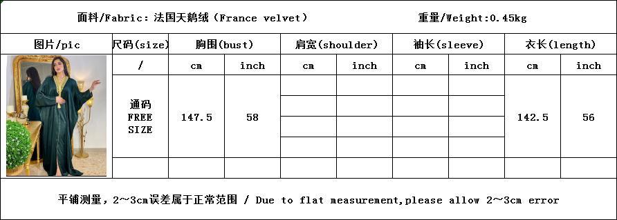 Moroccan Kaftan Dubai Open Abaya Dress for Women Gold Ribbon Batwing Sleeve Arabic Muslim Turkey Clothes France Velvet