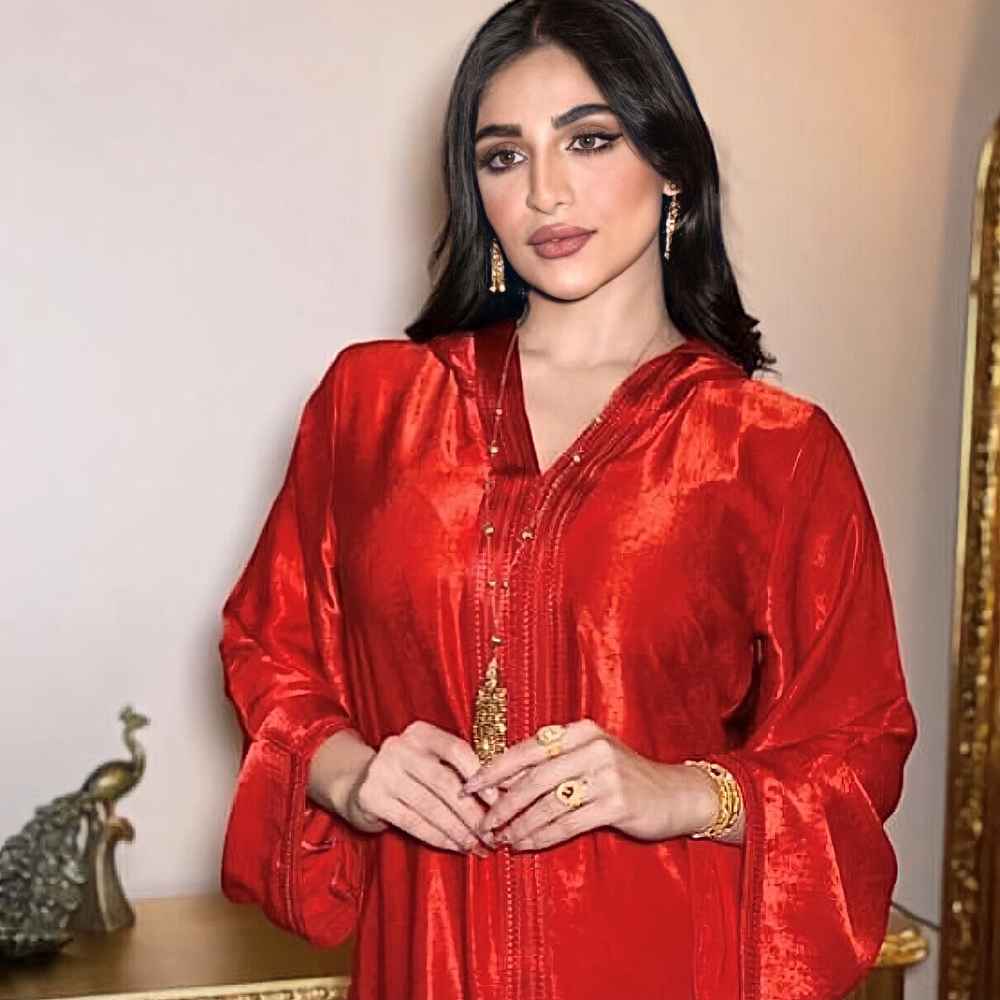 Muslim Ladies Hooded Velvet Dress Abaya Embroidery Jalabiya Red White Green Robe with Hat Dubai Turkey Kaftan New