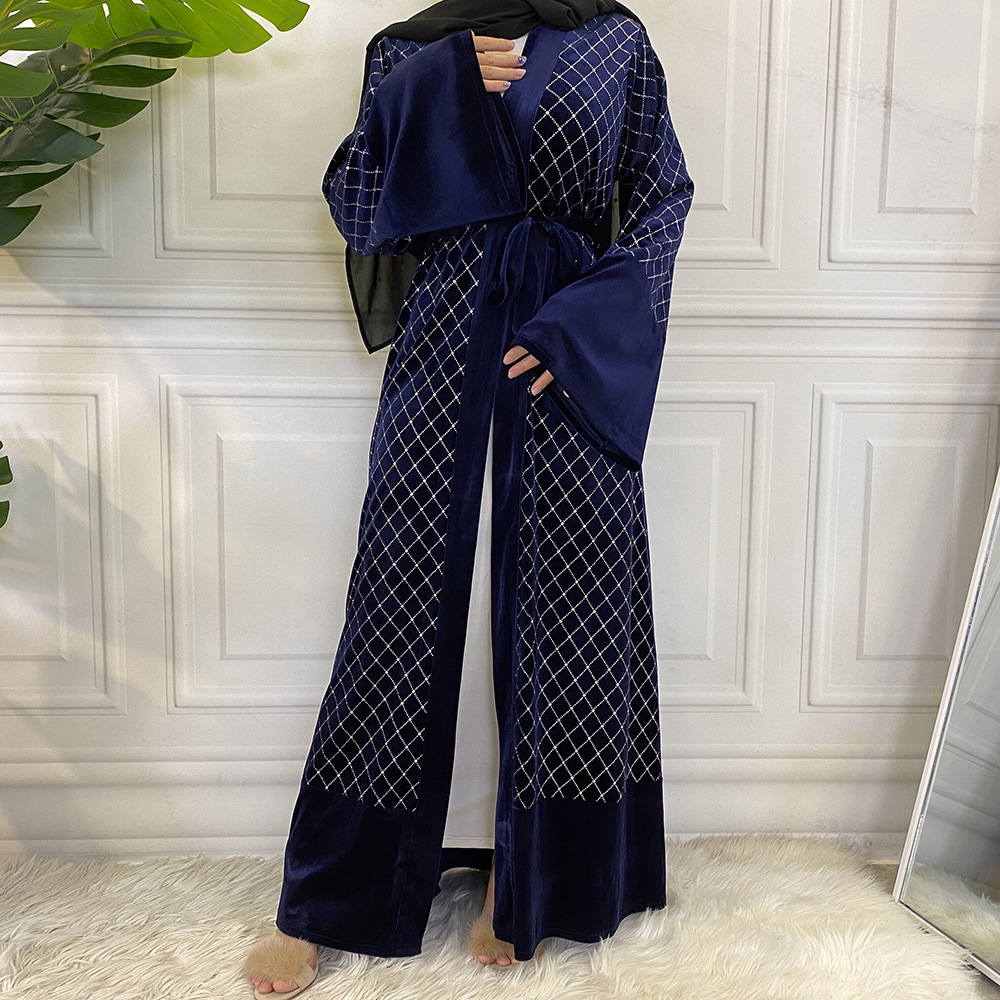 Muslim Dress Women Velvet Diamond Abaya Muslim Maxi Kaftan Kimono Kaftan Dubai Islamic African Clothing Abayas for Women