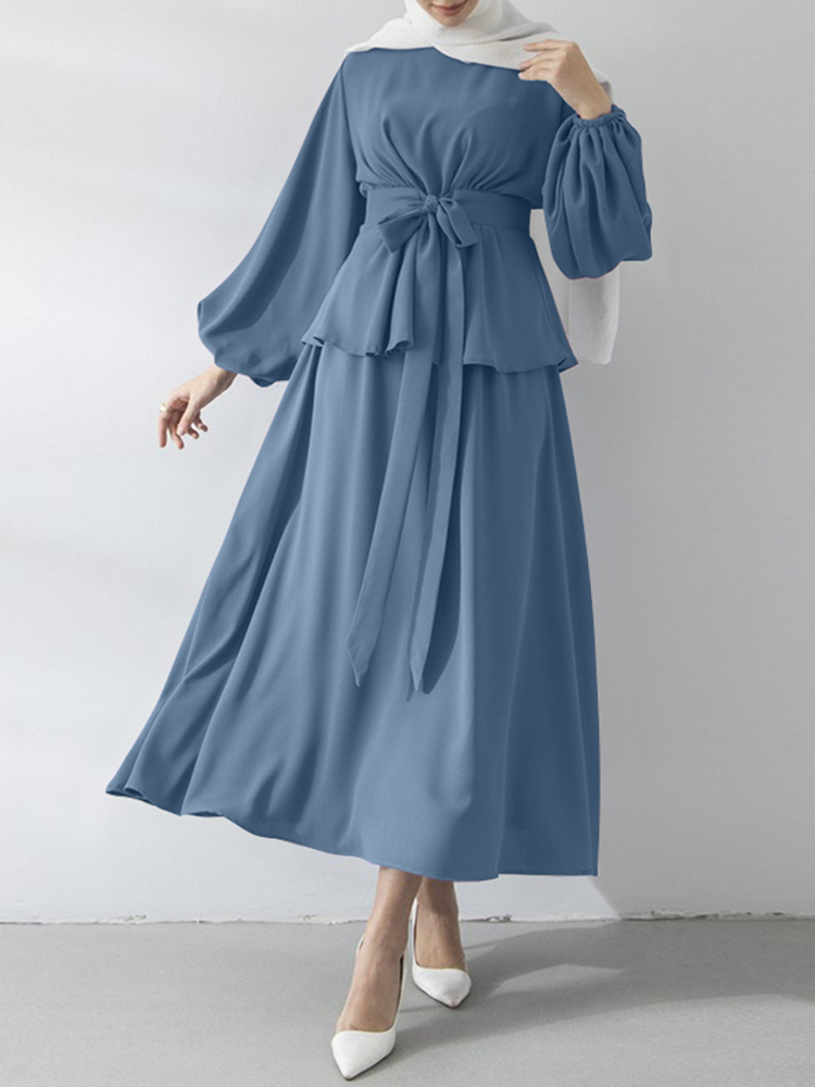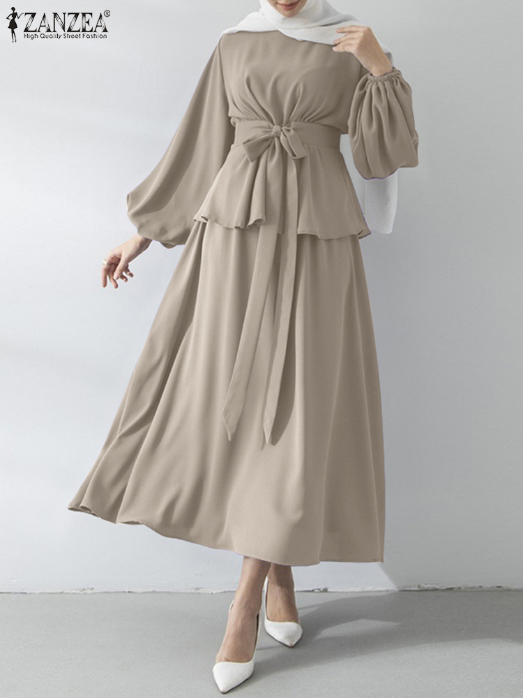 Muslim Sets Women Autumn Matching Sets ZANZEA Puff Sleeve Bllouses A-Skirts Female Marocain Turkish Tops Islam Clothing