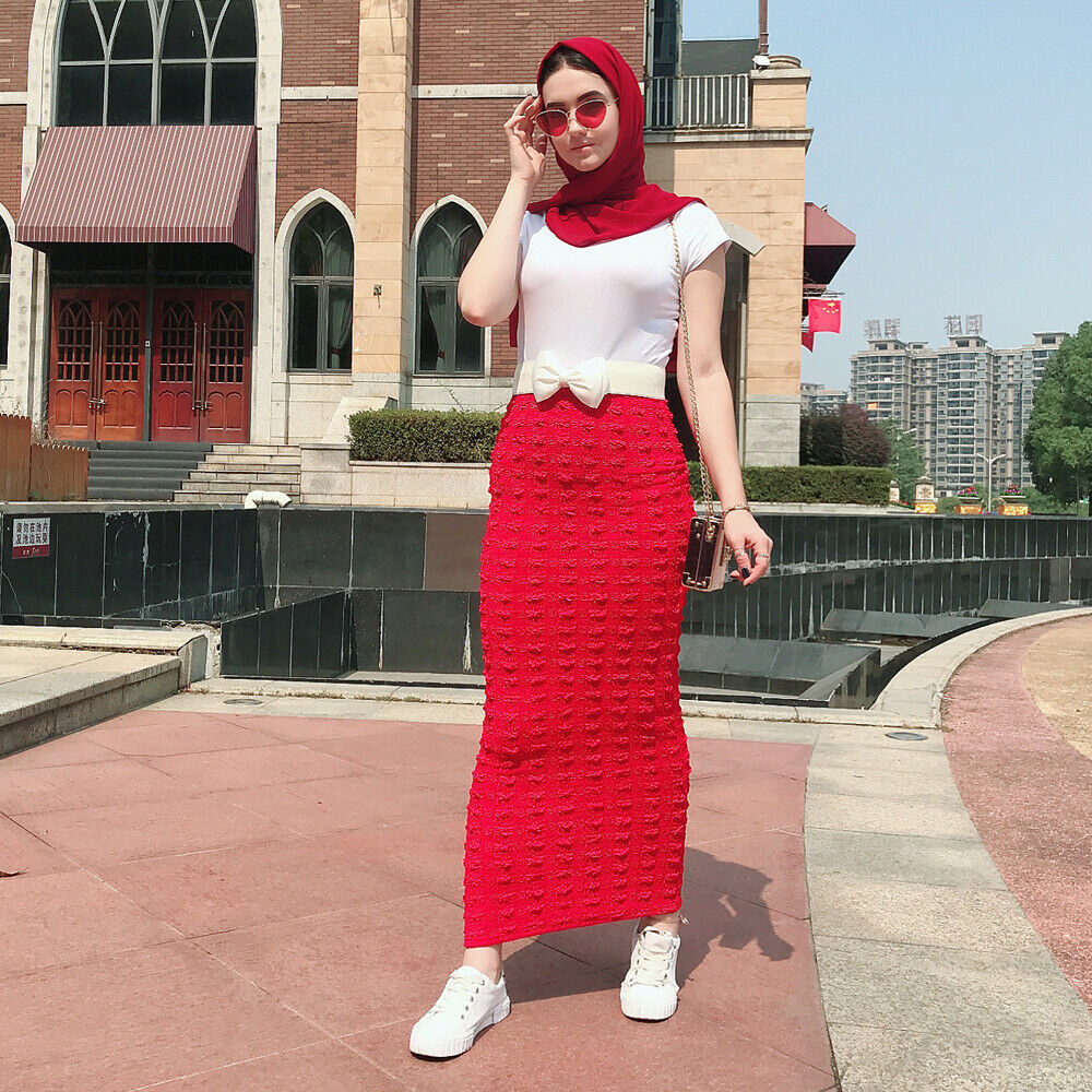 Muslim Women Long Bodycon Pencil Skirt Islamic Stretch Spring Evening Cocktail Party Knitting Casual Ladies Maxi Skirt