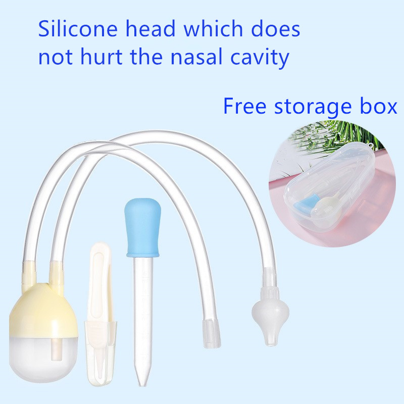 1.Put the suction tube into the mouth, lift the baby, insert the suction tube into the baby's nostrils, and slowly suck the nose out.