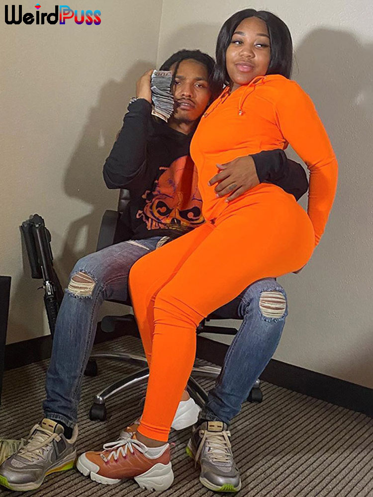 OrangeA Women Autumn Casual Two Piece Set Hooded Crop Tops Sporty Leggings Matching Stretchy Soft Skinny Fitness Slim Streetwear