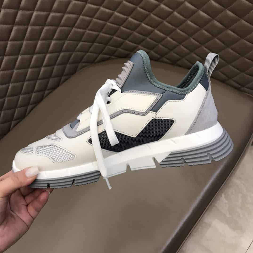 PRADA MACRO RE-NYLON AND BRUSHED LEATHER SNEAKERS – PD023