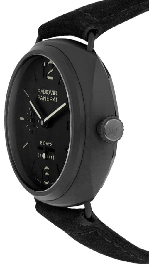 45mm = 1 3/4″ Case, 7″ Adjustable StrapCase Thickness: 16.5mm Inlet Size: 24mm Fixed Bezel Smoked Sapphire Crystal Exhibition Case Back Luminescent Hands & Hour Markers Screw Down Crown Black Ceramic Tang BuckleMovement:Automatic