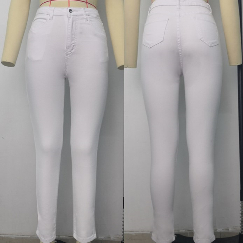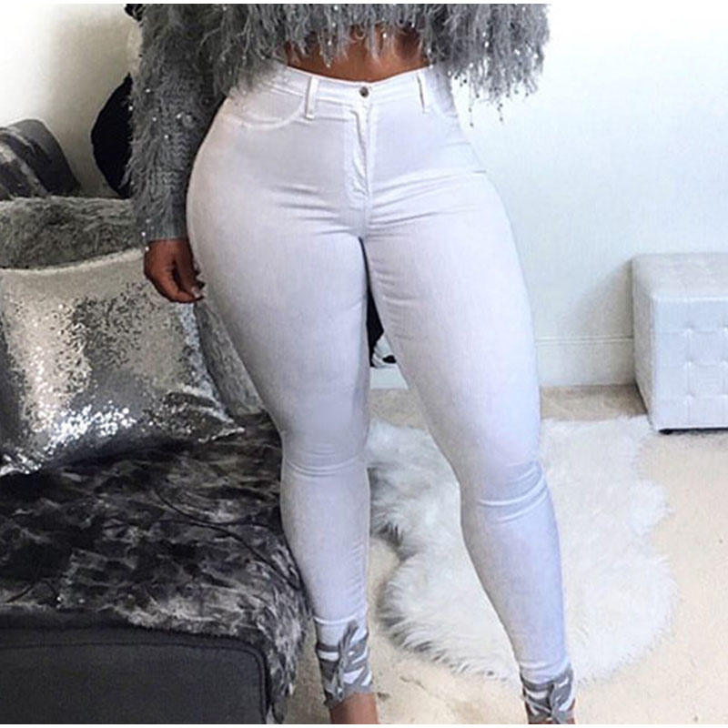 Plus Size High Waist Stretchy Skinny White Basic Casual Jeans 4XL Distressed Bodycon Pencil Denim Pants Lady Indie Trousers Jean