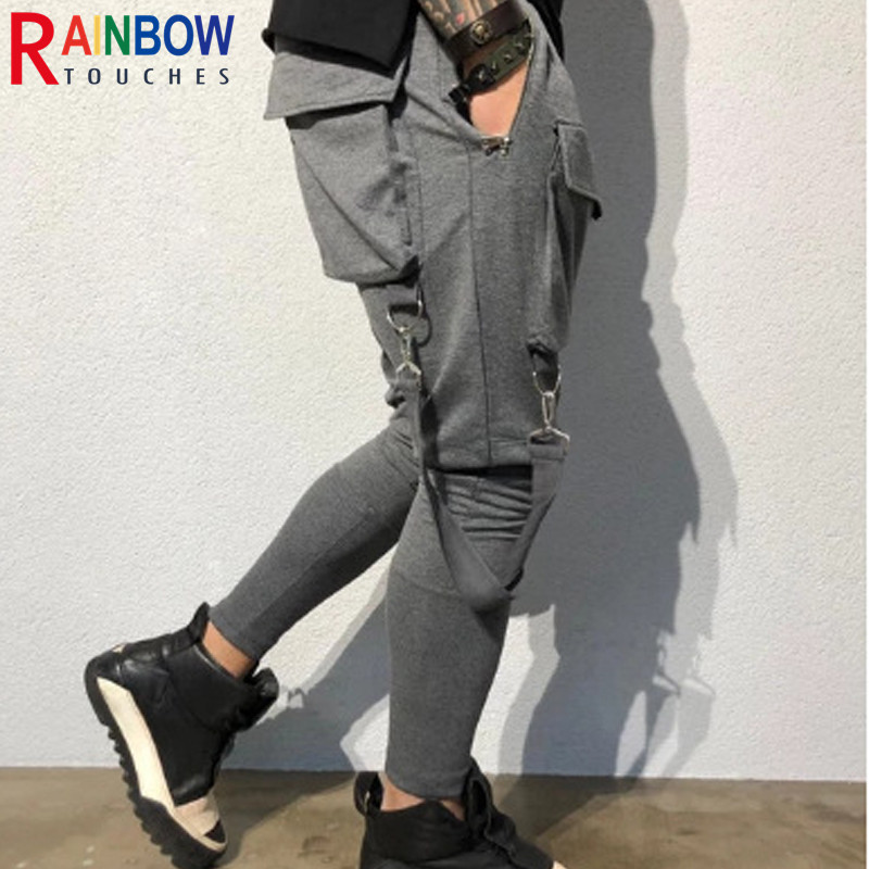 Rainbowtouches Sports Men Stretch Tights Sweat Absorbing And Breathable Fitness Casual Multi Pocket Stitching Cargo Pants Mens