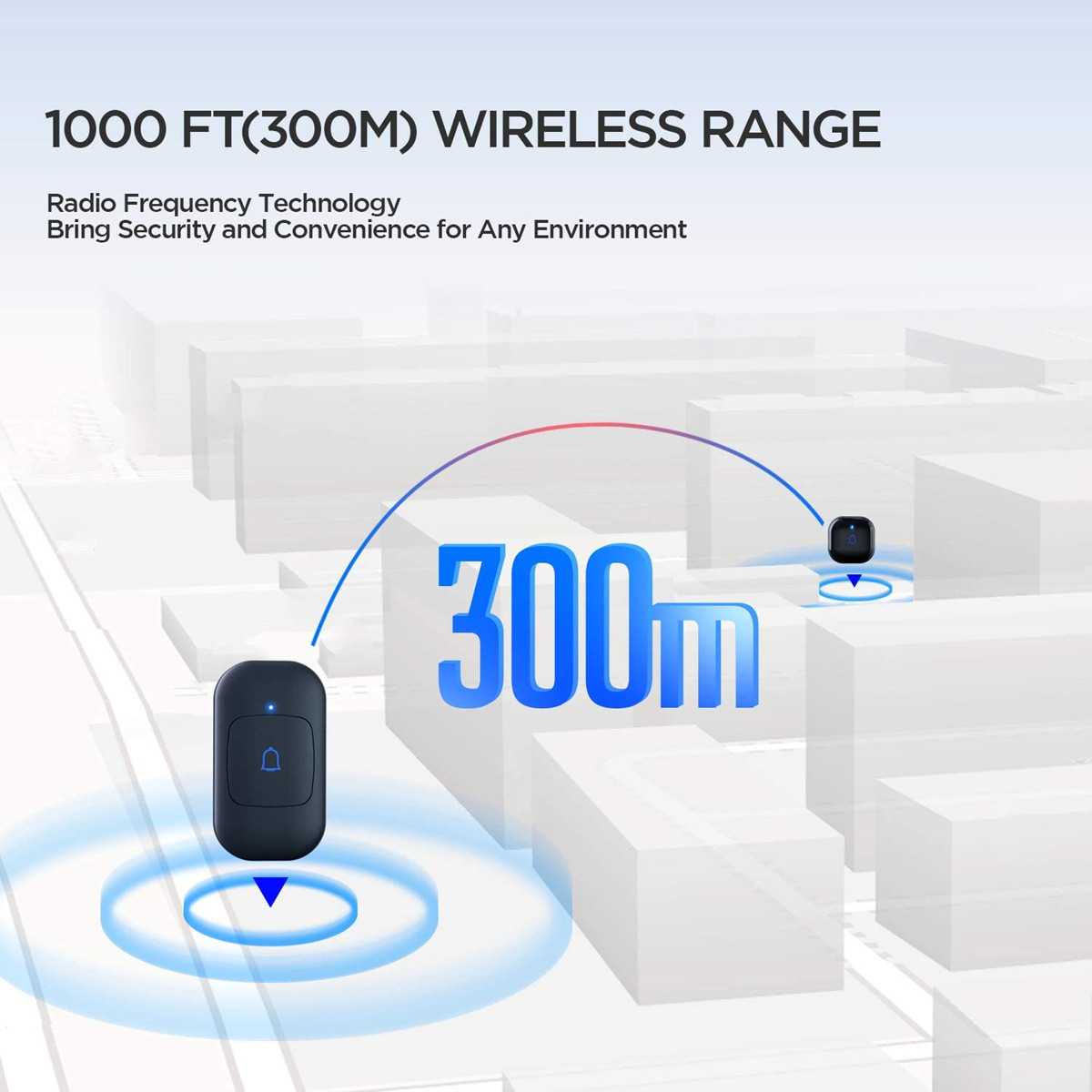 The door bell ringer wireless with a reliable wireless range of 1,000ft/300m in open area and strong signal penetration, the doorbell will never fail to alert you when someone shows up at the door.The doorbell wireless is the best choice for homes ,classroom, office and any other occasions.