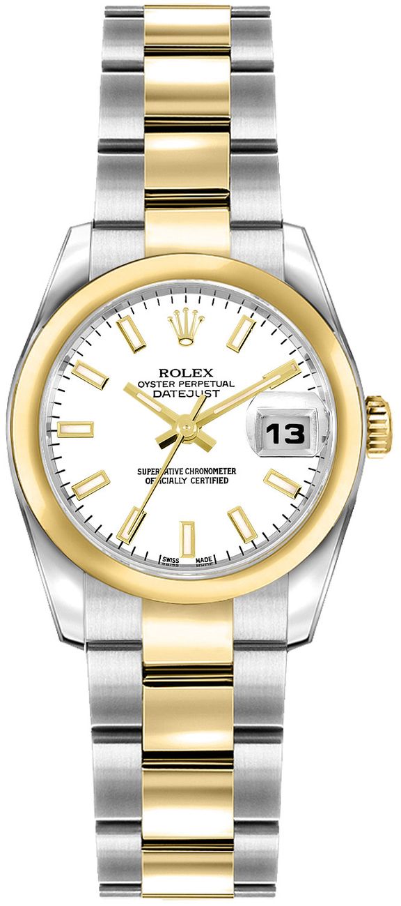 26mm = 1″ Case, 6″ Adjustable Bracelet Inlet Size: 13mm Fixed Bezel Polished Solid 18k Yellow Gold Screw Down Crown Screw Down Solid Case Back Folding Oysterclasp with Easylink 5mm Comfort Extension LinkMovement:Automatic