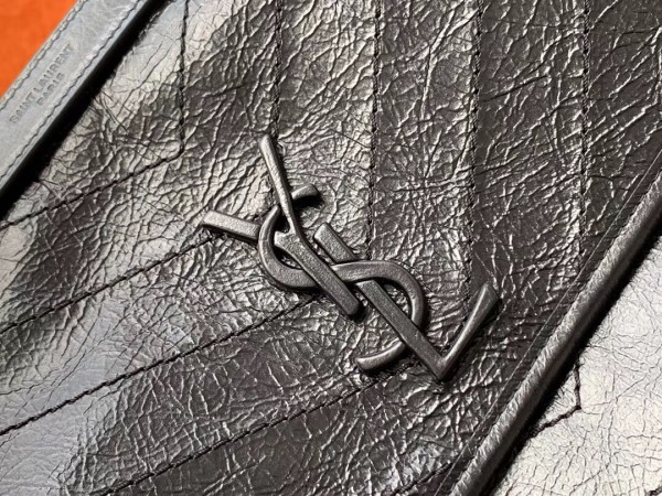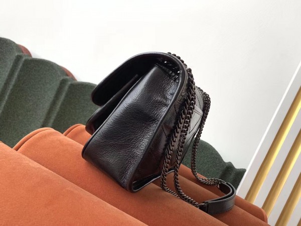 Saint Laurent Baby Niki Chain Bag In Black Crinkled Leather
