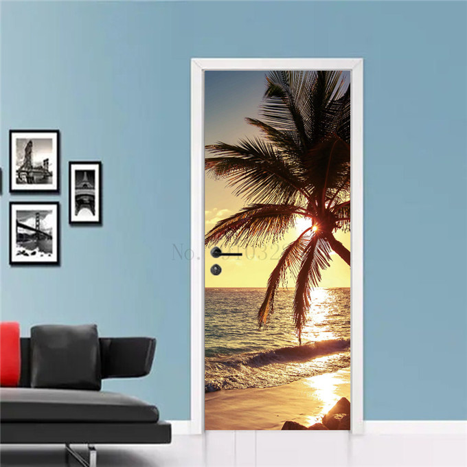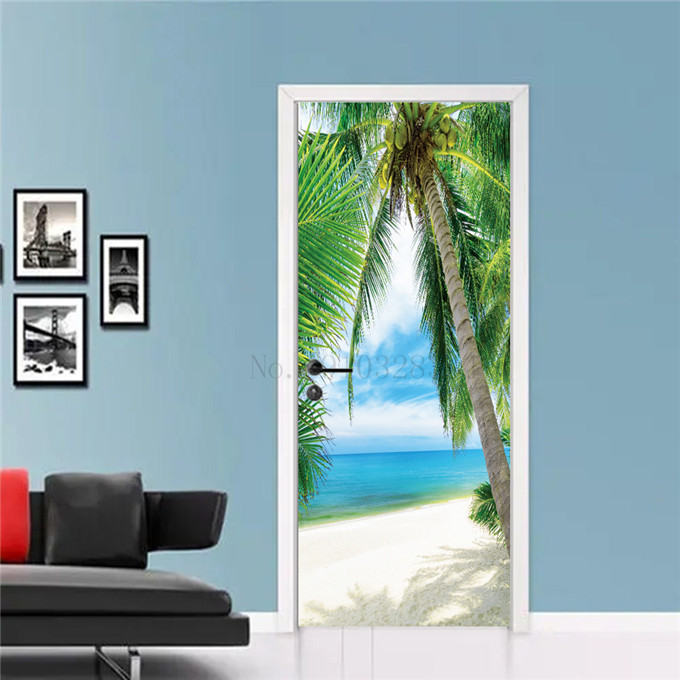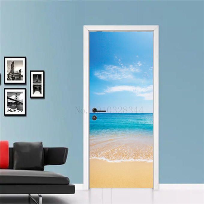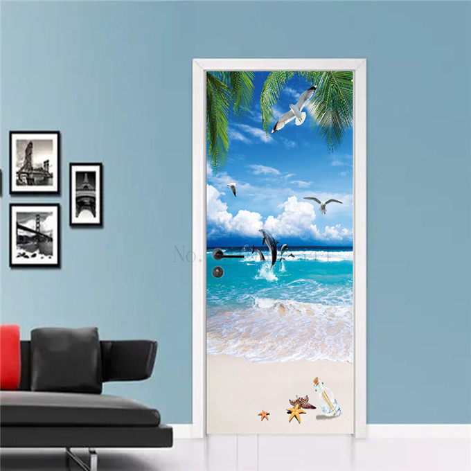 Seascape Beach Door Stickers Bedroom Bathroom Living Room 3d Decoration Wallpaper Self-adhesive Vinyl Poster Window Glass Mural