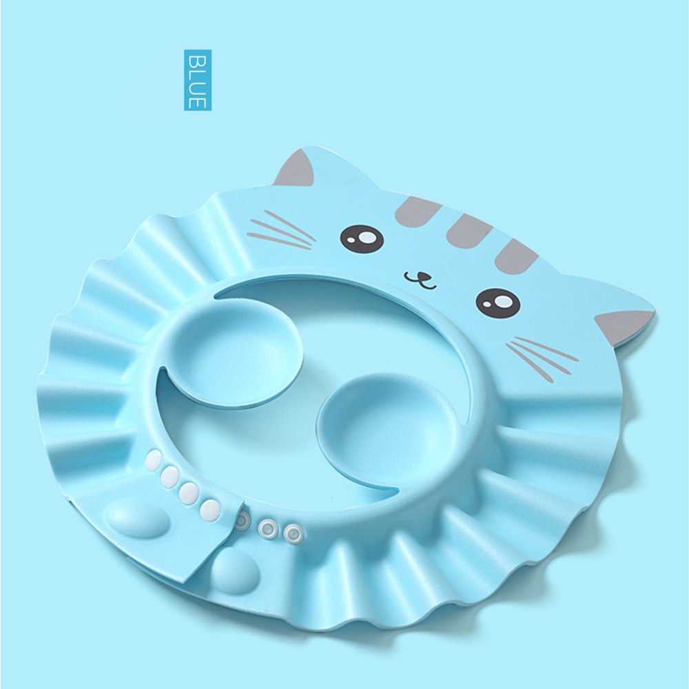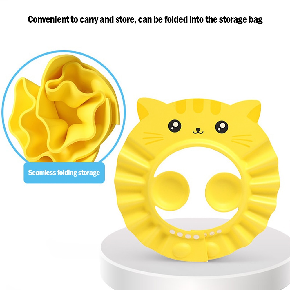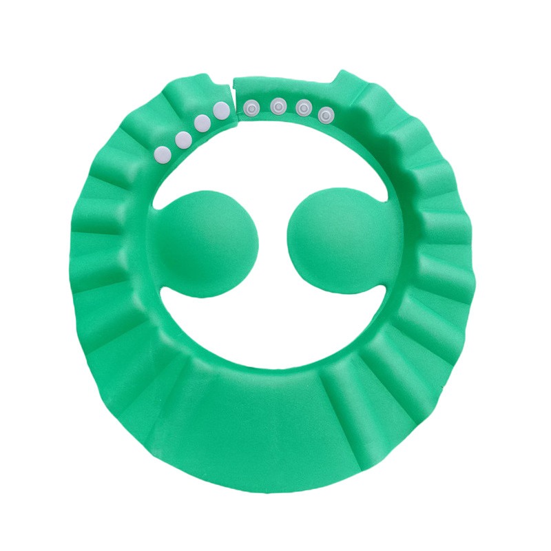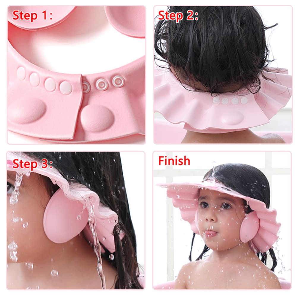 Because the material of the shampoo hat is elastic, so don't worry about squeezing the baby's head. It has 4 buttons, please compare the baby's head first, determine the button to use and then push the buttons. Use it from top to bottom, then buckle down and pull down evenly, don't pull hard, adjust the hair and ears, you can use it.