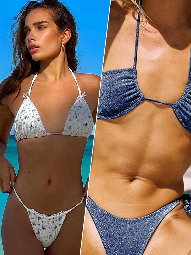 Solid Color Swimsuit Women Swimwear Beach Wrap Bandage Bikinis Three Piece Suit Sexy Bikini Set Summer Sarong Micro Biquini