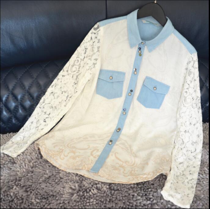 Spanish Desigual women's chiffon printed shirt tie-dye lace blouse embroidery patchwork color blouse blouse