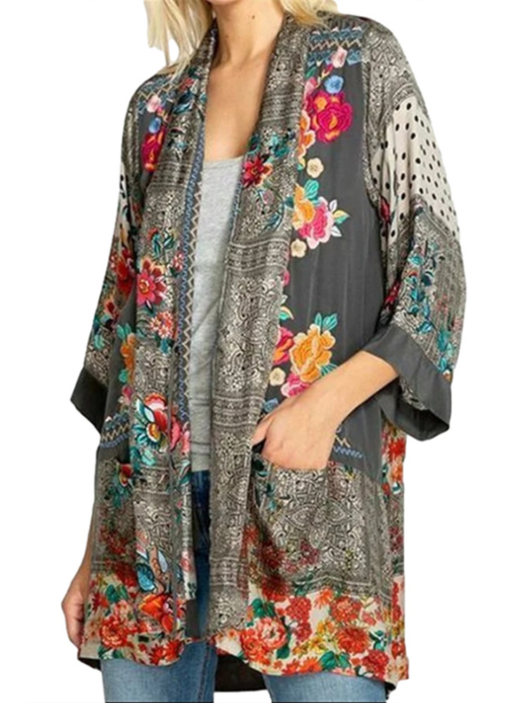 Spring Autumn Floral Print Cardigan Pocket Tops Women Long Sleeve Loose Casual Aesthetic Shirt Female Y2K Vintage Femme Clothes