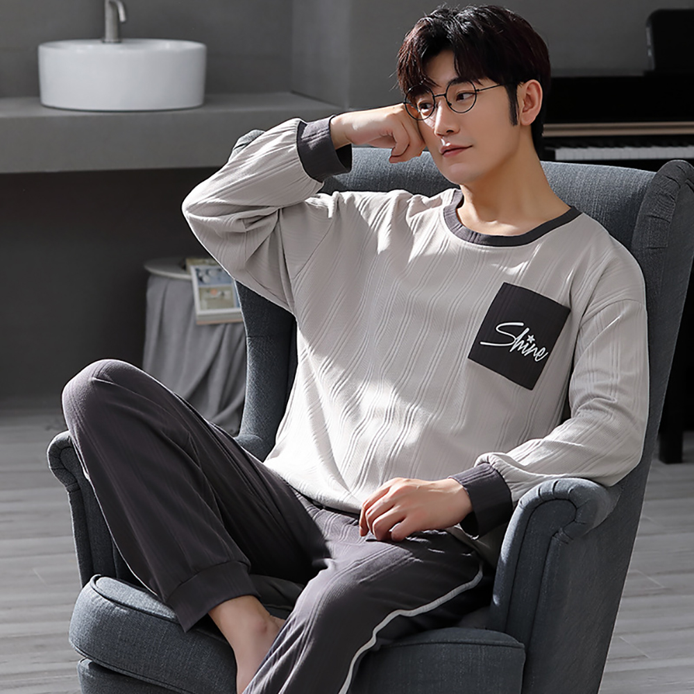 Spring Summer Male Long Sleeve Pajama Sets Casual Striped Lounge Set Comfortable Soft Sleepwear Pijama Plus Size Pajamas for Men