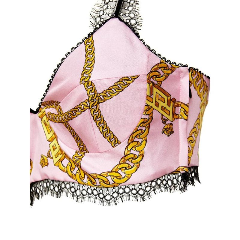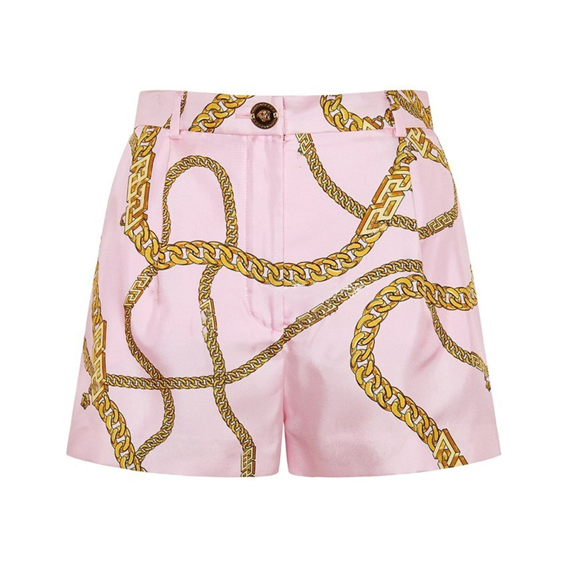 Spring/Summer Lace Sling Shorts Suit Women's Sexy Gold Chain Print Stitching Slim Fit VersatileTank Top