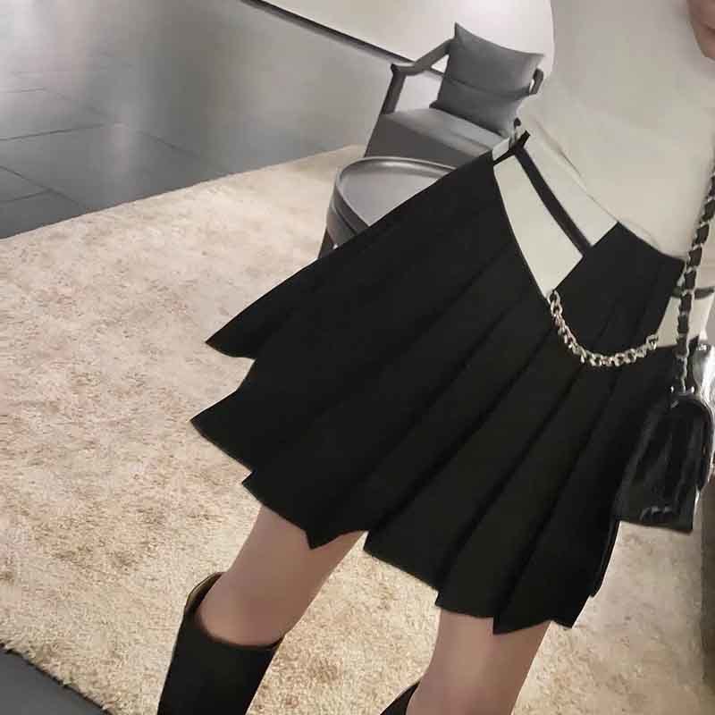 2022 Summer Black Mini Pleated Skirts Fashion Runway Elastic High Waist Letter Printed A-line Skirt Women Sexy Luxury Clothes.A0773