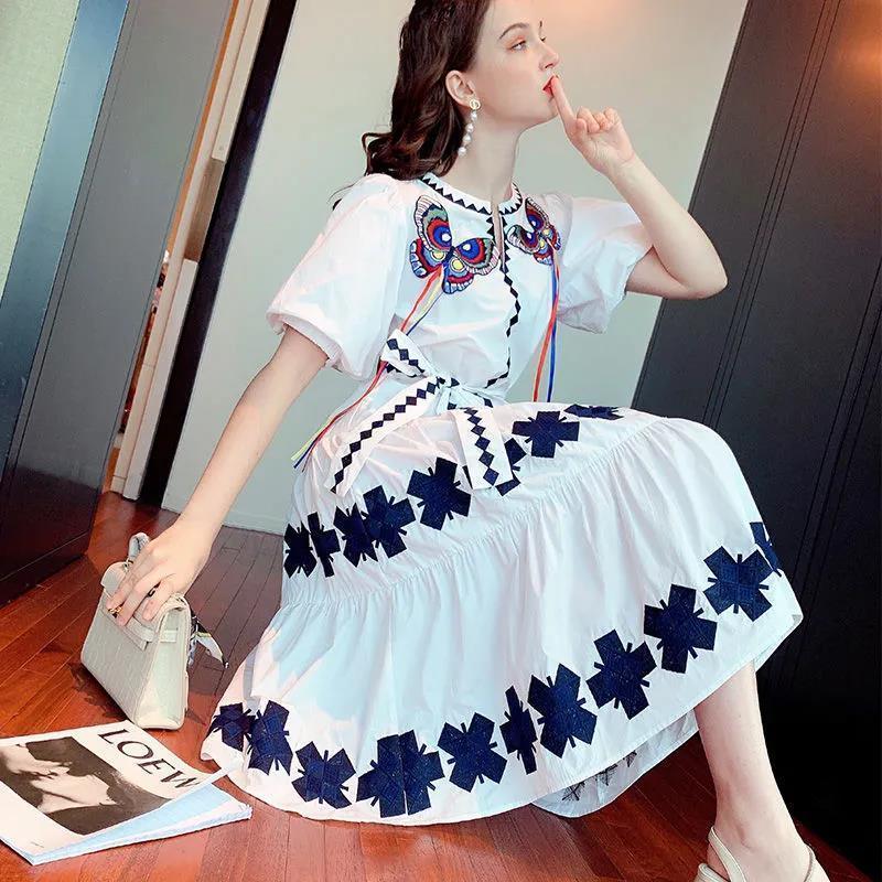Summer Ladies Dress Large Size Women's Retro Style Temperament French Style Dress