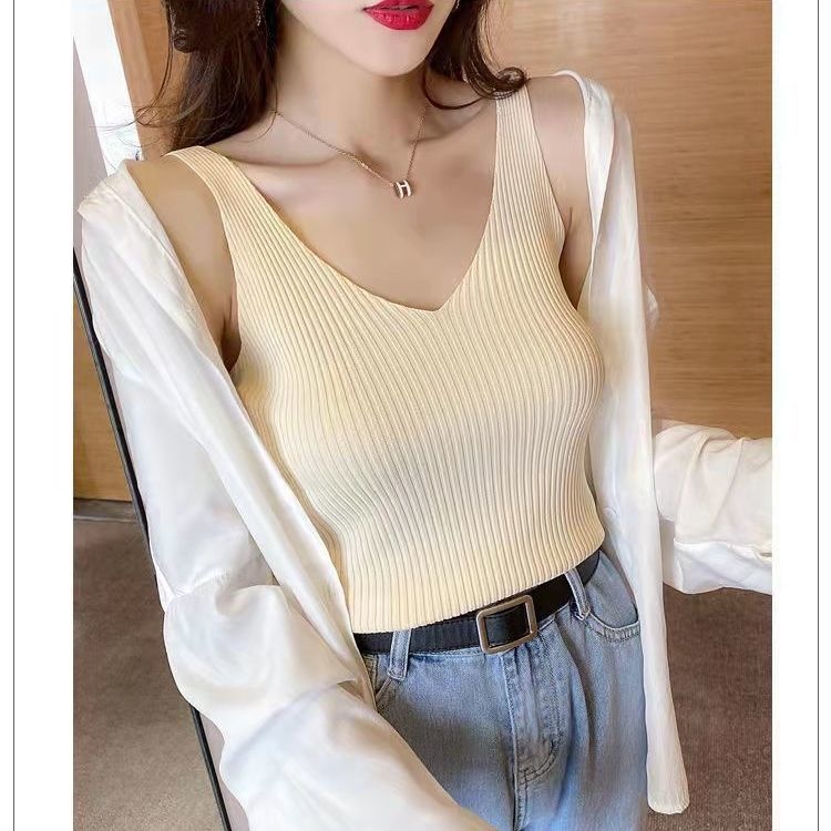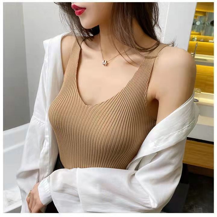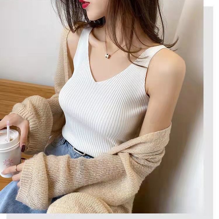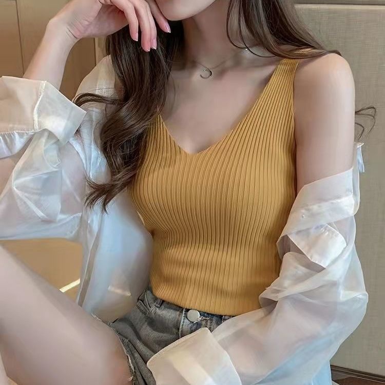 Summer V-neck Ice Silk Suspender Vest Women Inner And Outer Knitted Bottomed Shirt Top