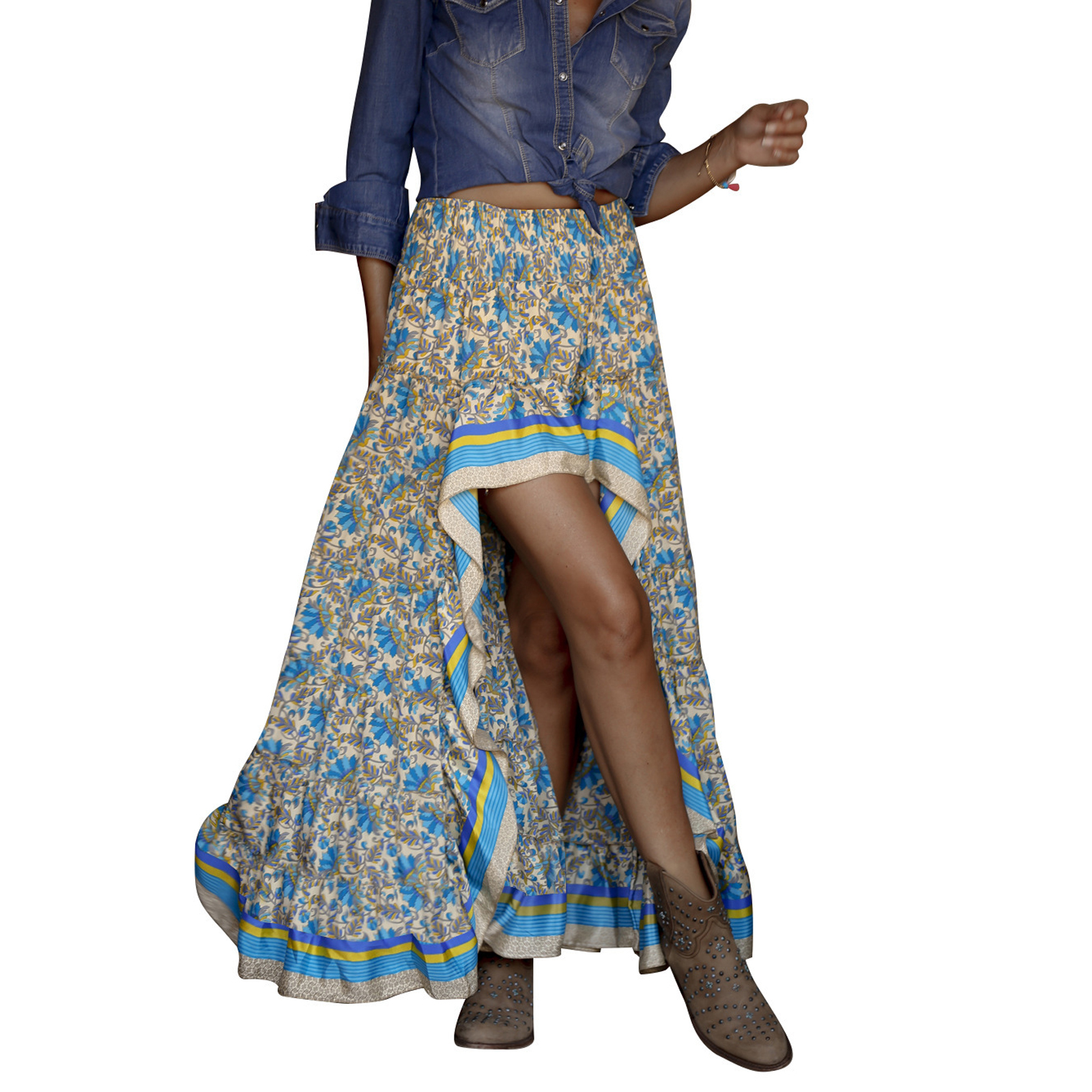 Summer Women Boho Floral Long Maxi Skirts Empire Beach Holiday Ruffles Skirt S-XL