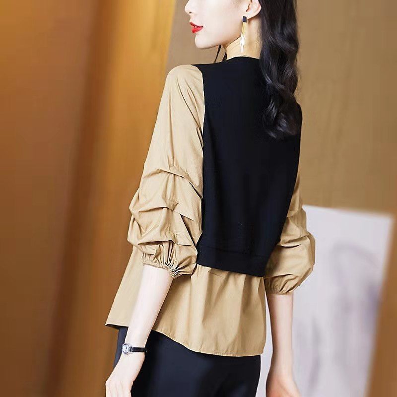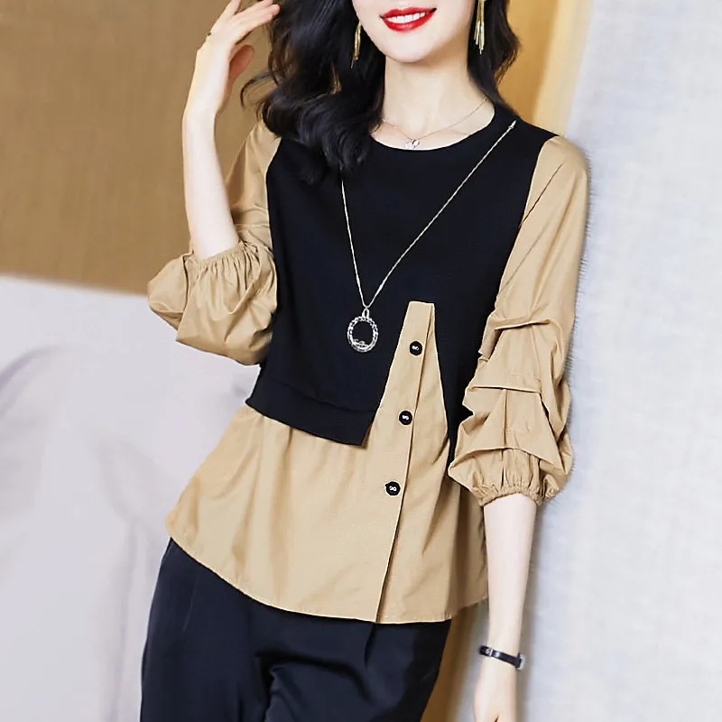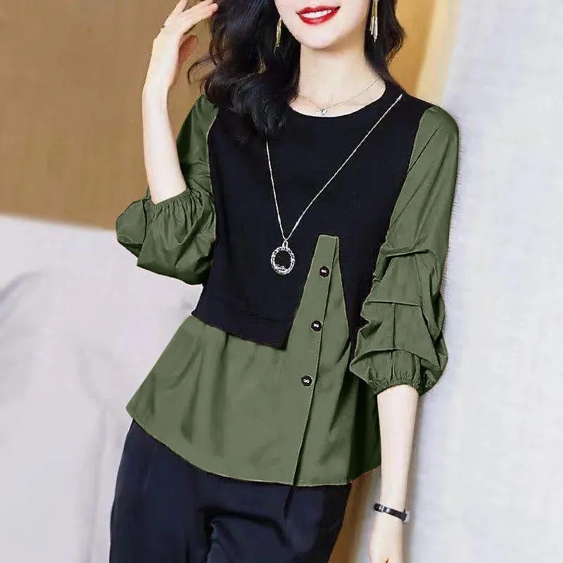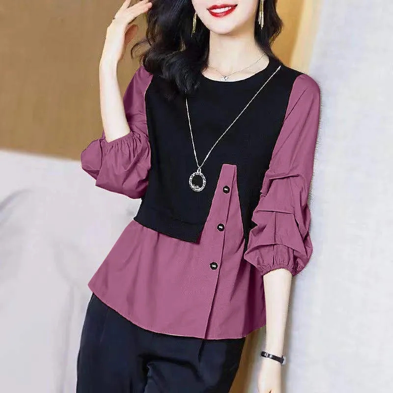 Summer Women Fake Two Shirts Splicing 3/4 Sleeve Elegant Female Pullover Slim Fit Miss Shirt All-Match Bottoming Shirt