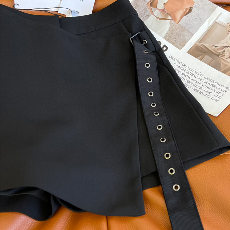 2022 Summer Women High Waist Shorts Black Cropped Hem Belt Button Skirt Shorts Loose Wide Leg Streetwear Fashion Simple Culottes