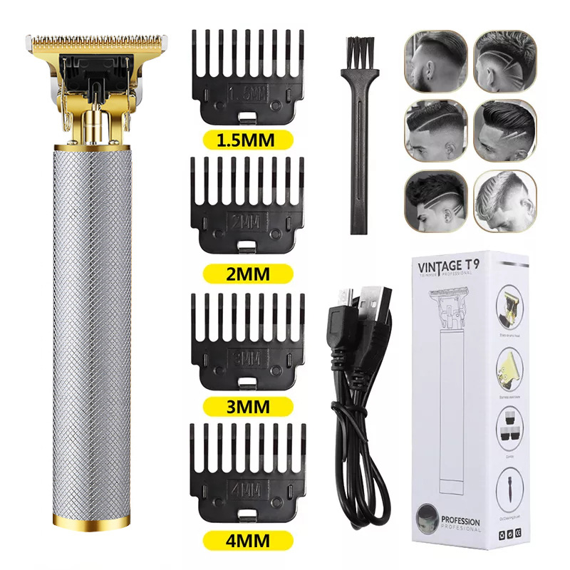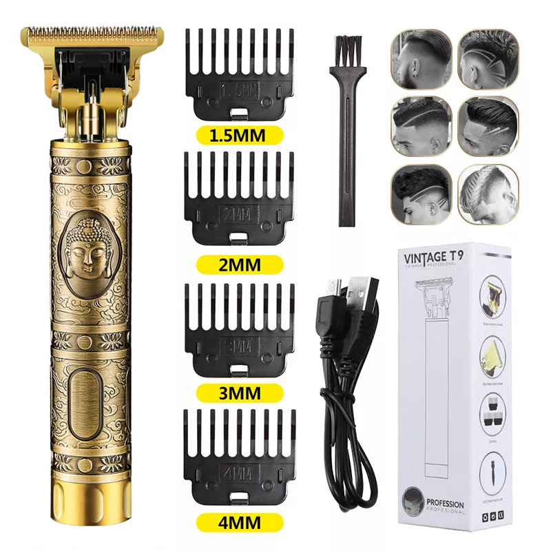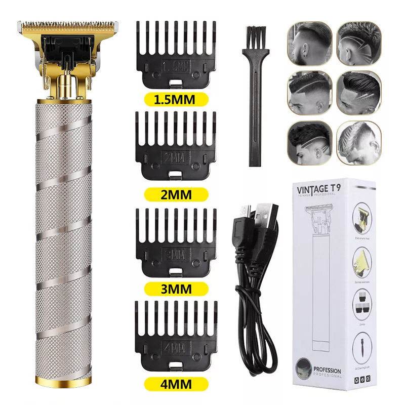 2022 Vintage T9 0MM Electric Cordless Hair Cutting Machine Professional Hair Barber Trimmer for Men Clipper Shaver Beard Lighter