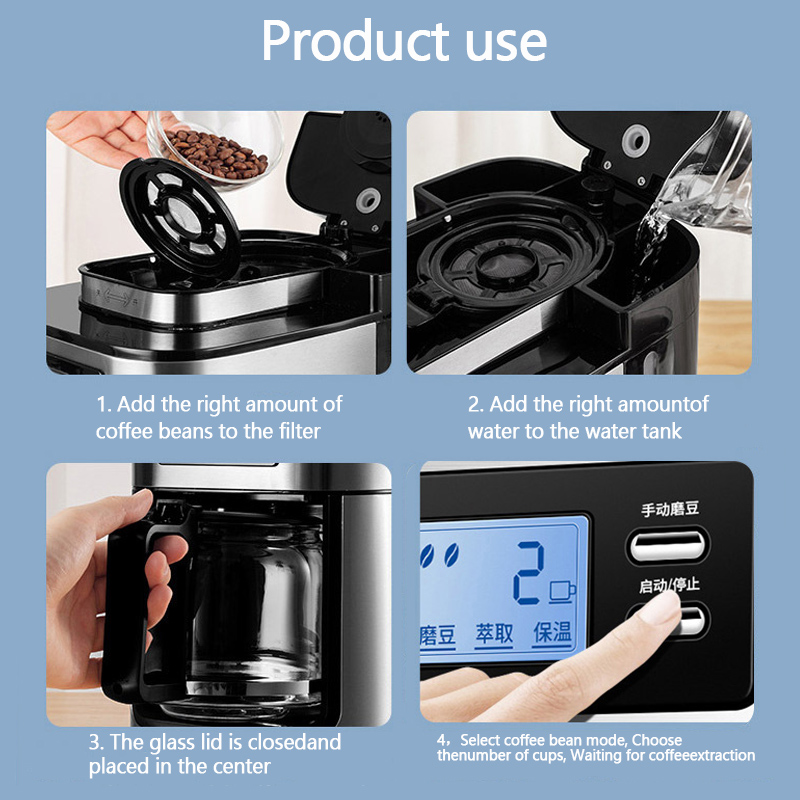 1.Fully automatic coffee grinder, freshly ground, mellow coffee.