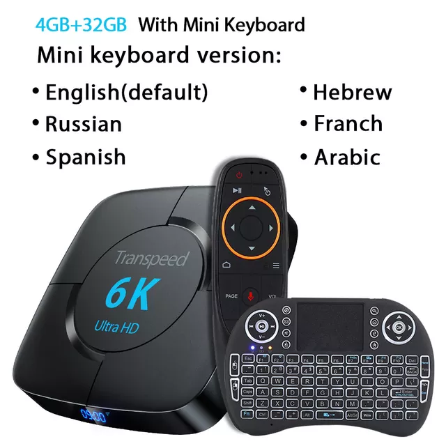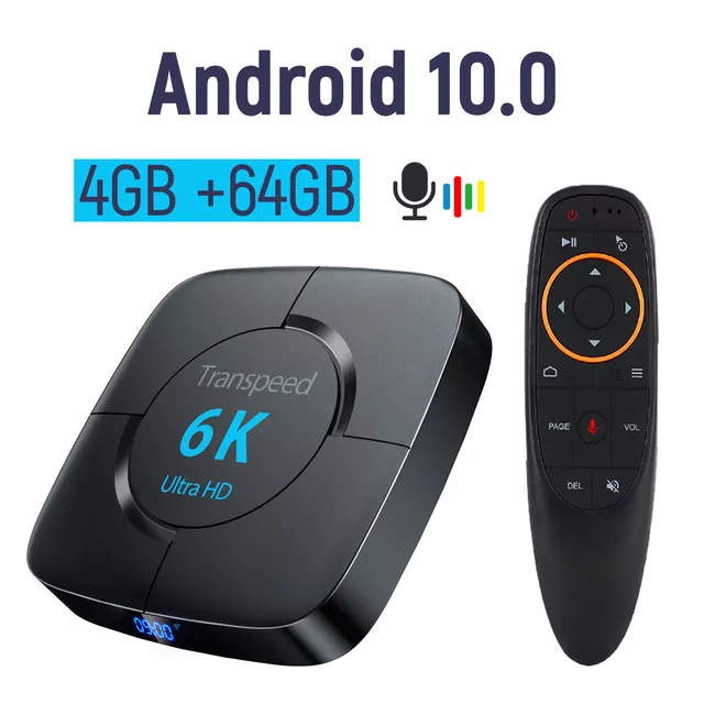 Transpeed Android 10.0 TV Box Voice Assistant 6K 3D Wifi 2.4G&5.8G 4GB RAM 64G Media player Very Fast Box Top Box