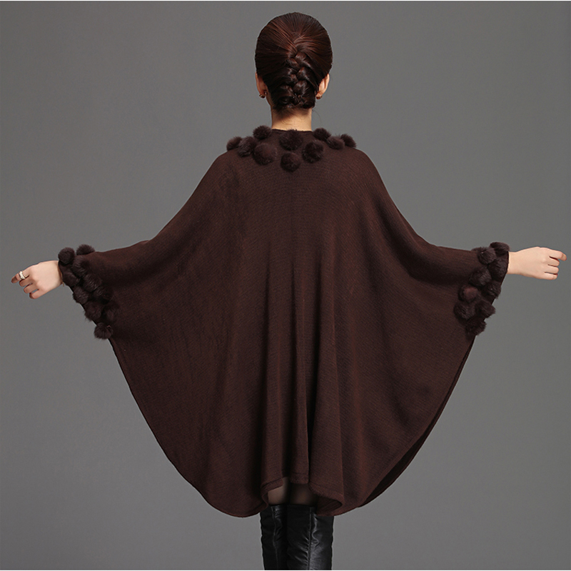 Trend Women Rabbit Fur Poncho Shawl Coat Long Knit Cashmere Cape Fur Sweater Pashmina Autumn Winter New