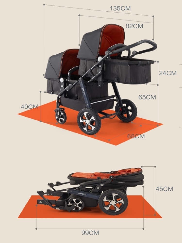 Twin baby sroller double stroller can sit high landscape folding umbrella four wheel double stroller cart