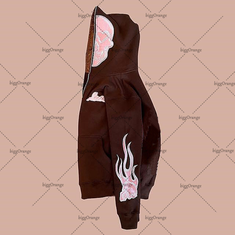Vintage High Street Flame Skull Print Streetwear Hoodie Women's Harajuku Style Pop Sweatshirt Y2K Jacket clothes for teens