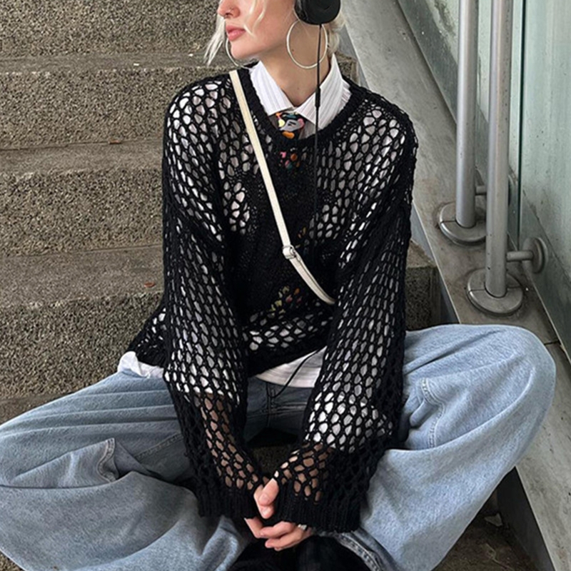 The stylish hollow knit pullovers gives a playful feeling, looks more young and energetic.