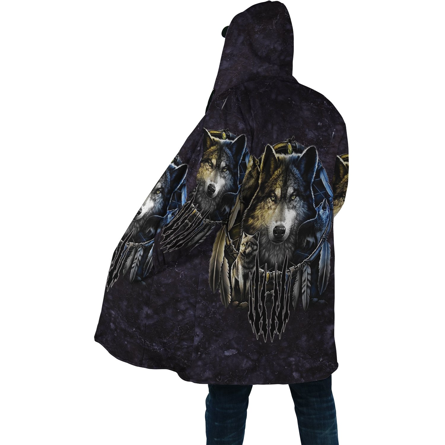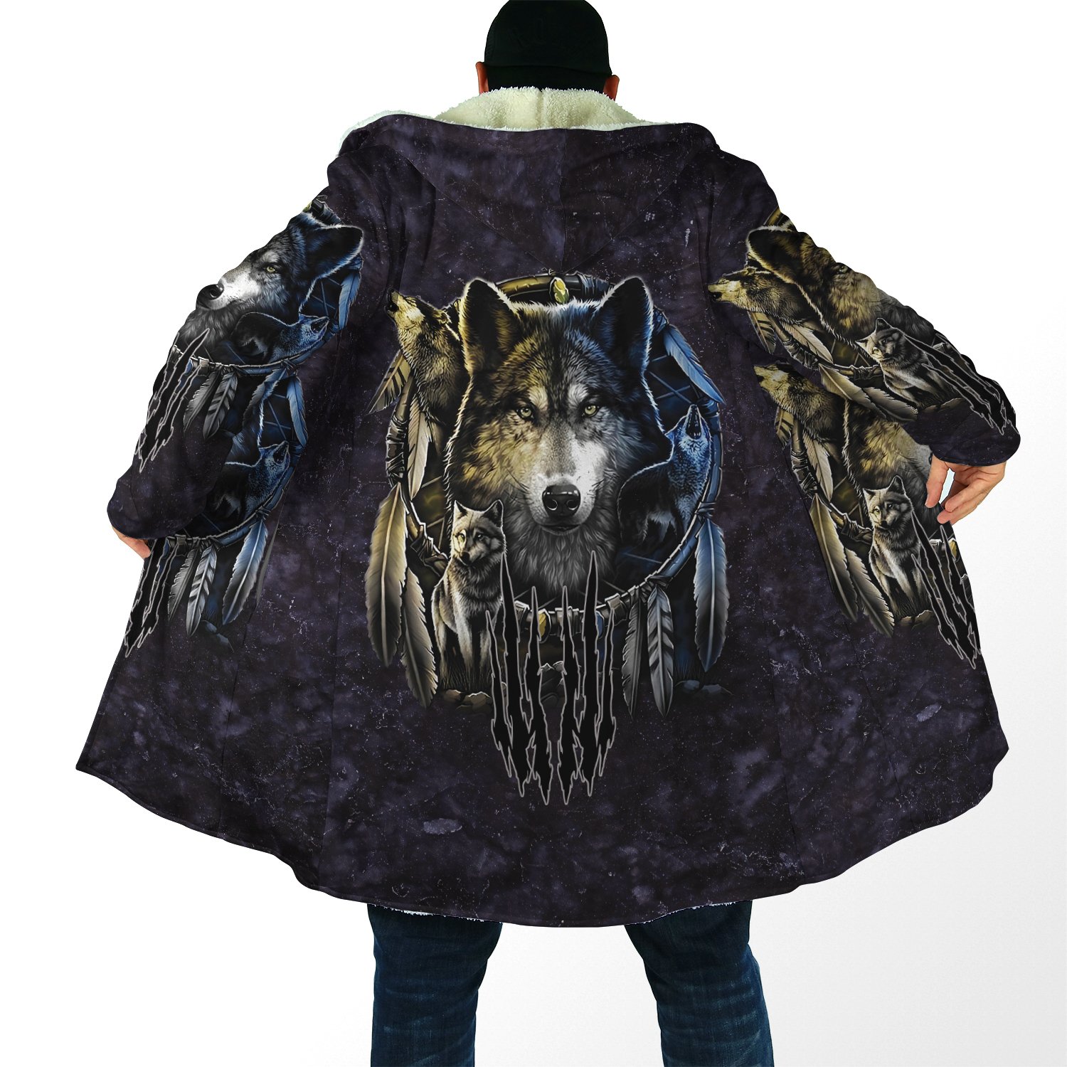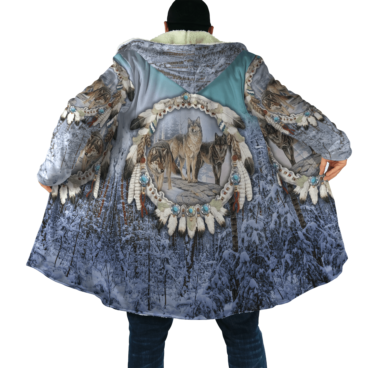 Winter Mens cloak Beautiful Tribal Native Wolf 3D full Printing Thick Fleece Hooded Coat Unisex Casual Warm Cape coat DP16