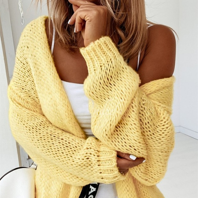 Women Casual Long Sleeve Long Sweaters Tops Autumn Winter Loose Cardigan Outwear Elegant Solid Knitted Sweater