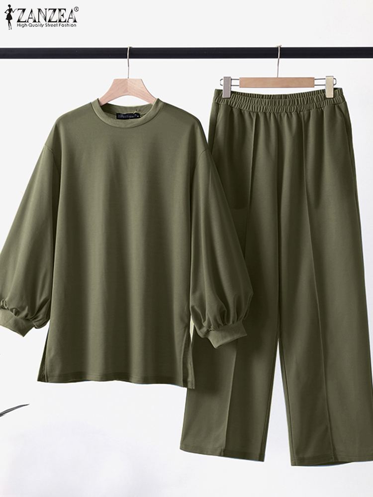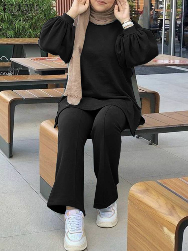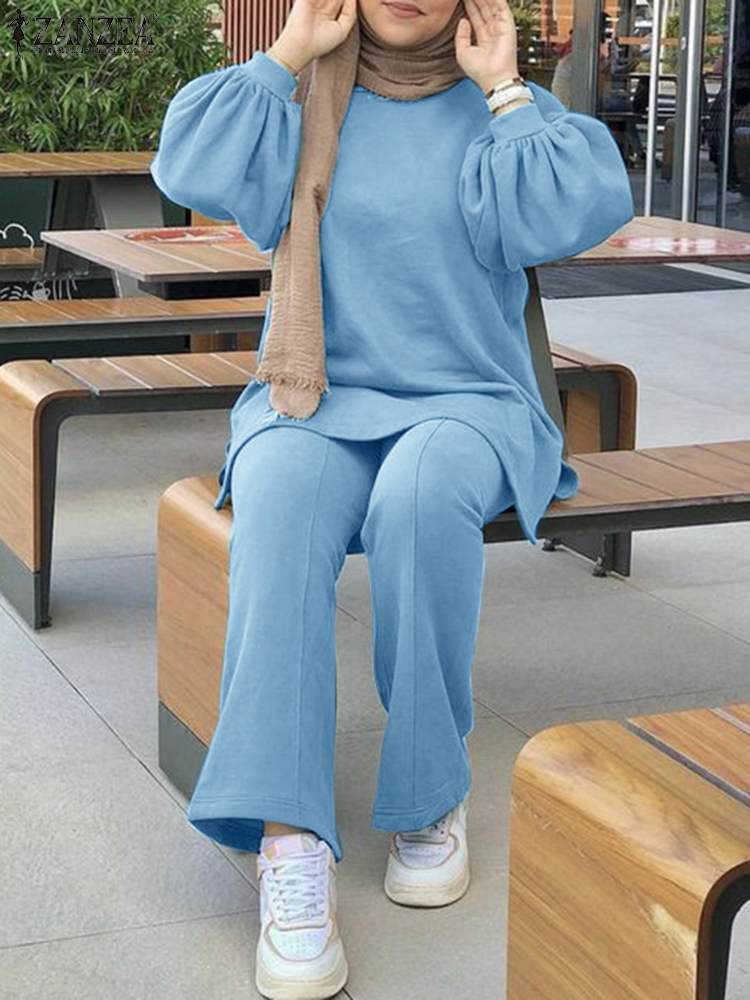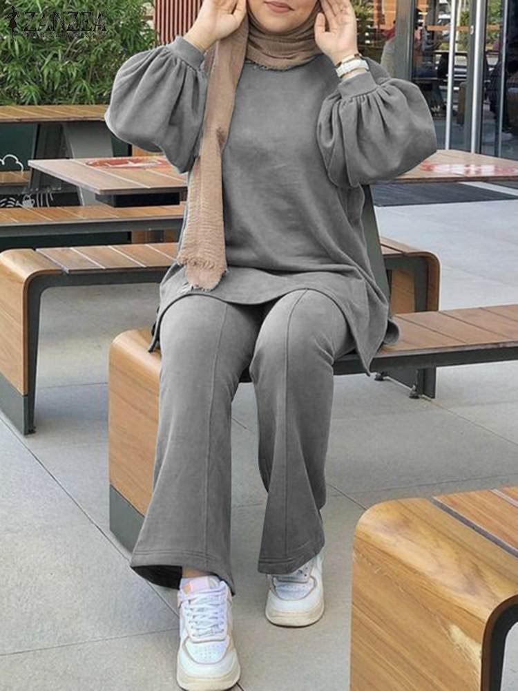 Package included:1 Suit(Blouse+Pants) Material:100% Polyester Colors:Black,Grey,Blue,Army Green Sleeve Length:Full Sleeve Neckline:O-Neck Pattern:Solid Color Length:Ankle Length Waistline:Elastic waist Thickness:Thin Decoration:Side Pockets Features:Puff Sleeve Style:Leisure,Bohemian,Retro,Europe,Muslim Suit Abaya Kaftan Season:Spring,Summer,Autumn,Winter Occasion:Family,Party,Beach,Wedding,Holiday,Employment Label: Yes Attentions: 1.The Real Object May Exist Slightly Colors Differences Compared To Images As Different Computers Display.Caution If Minding,Thanks. 2.There Might Be A Manual Measuring 1-3 cm Error.Sorry For Any Inconvenience. 3.Please Prevail On Real Item, Model Images For Reference Only. 4.Attention!!!Please check the size chart carefully before placing the order.