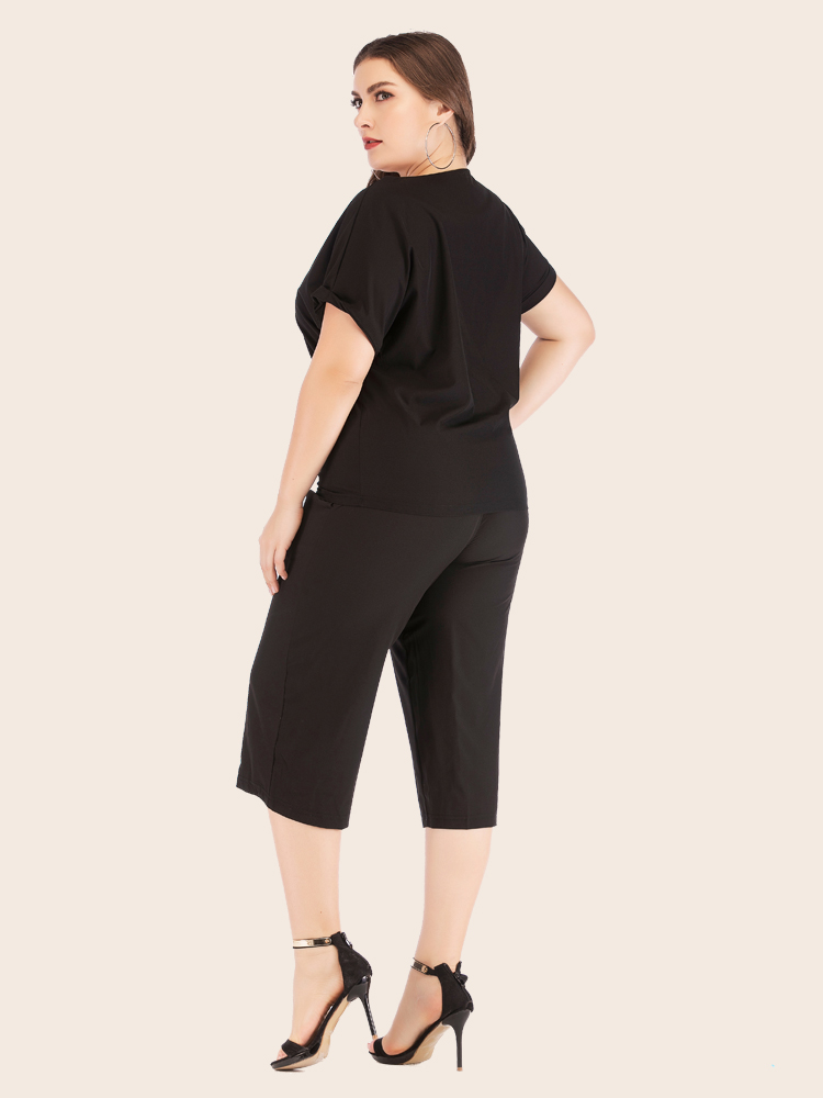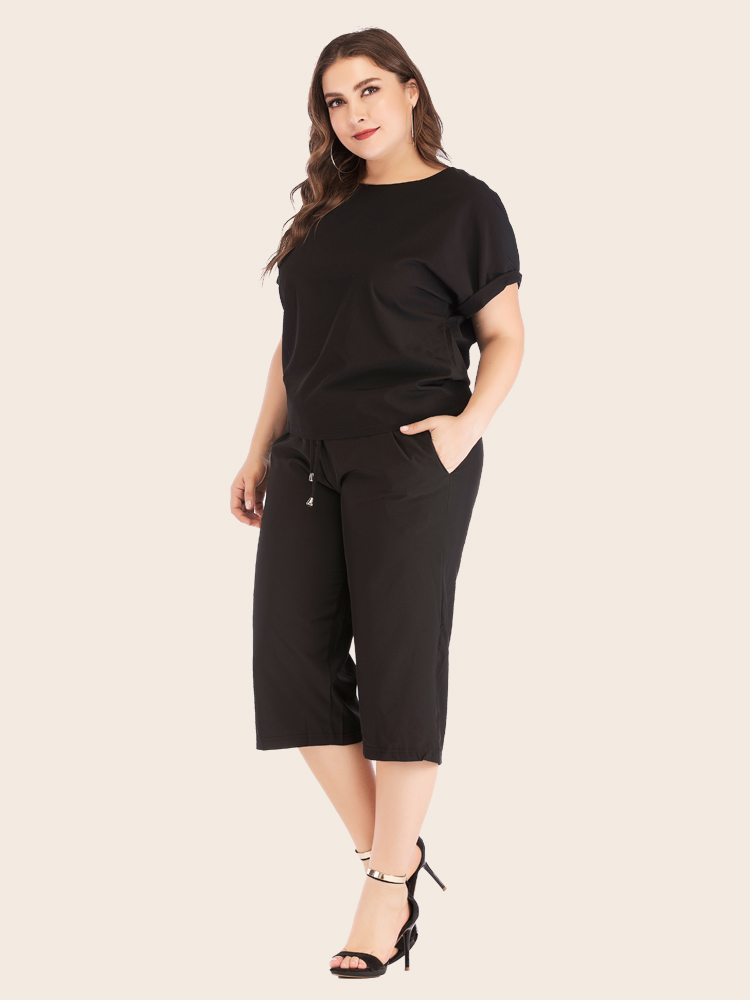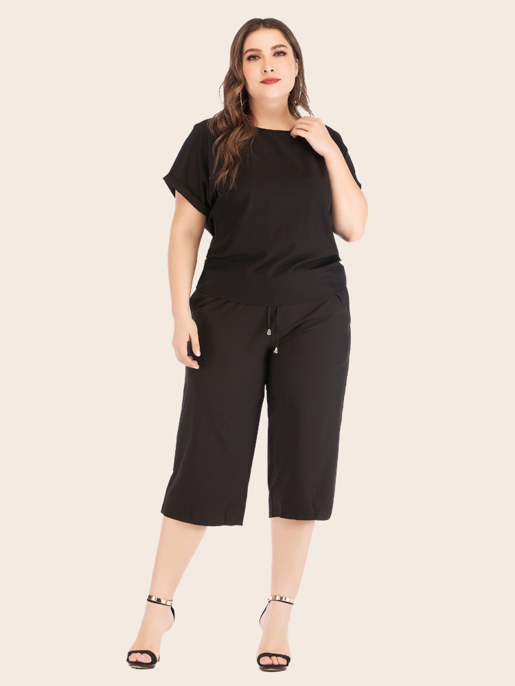Women Summer Casual Plus Size Solid Athflow Style Sportswear Suit Oversize Two Piece Set Athleisure Drawstring Pants