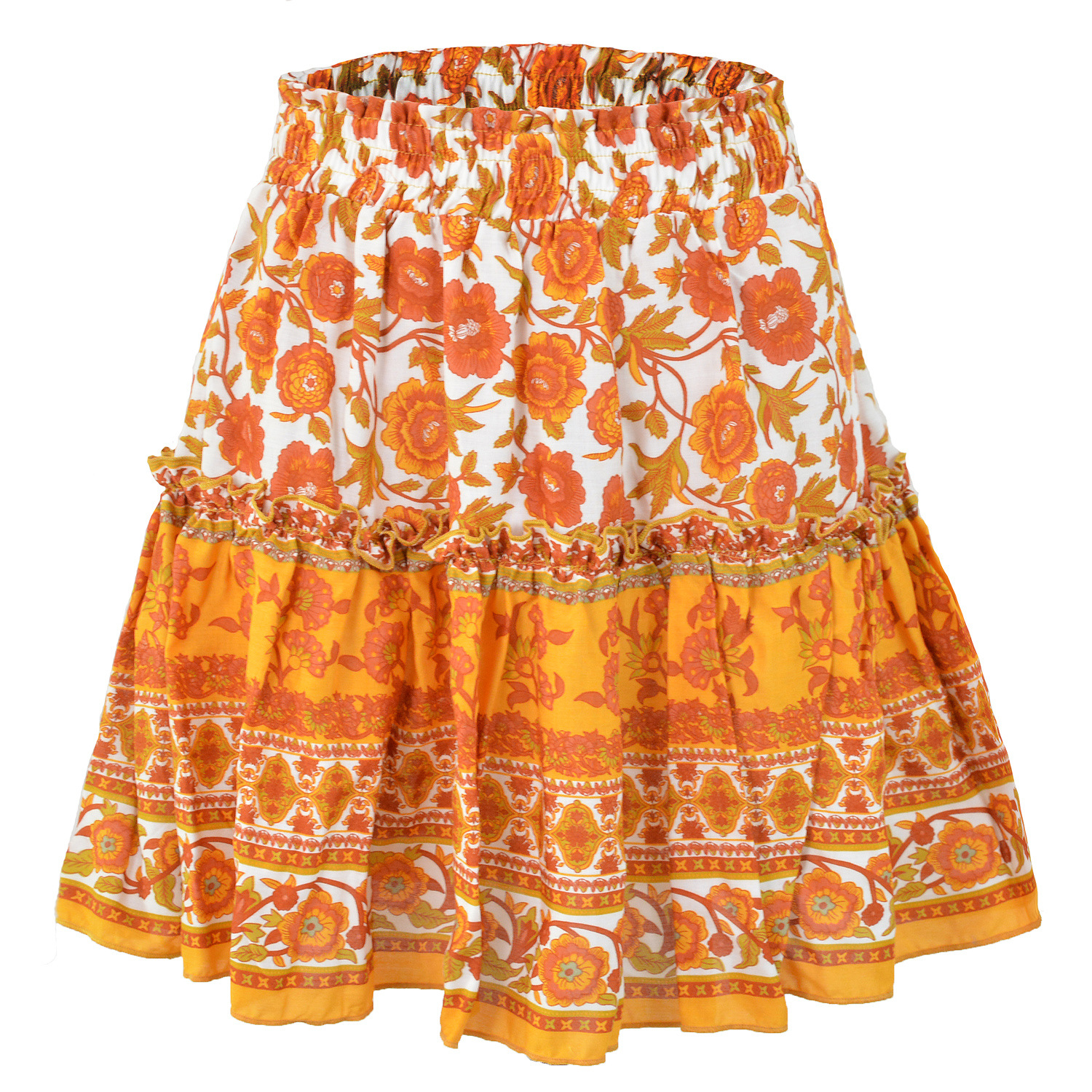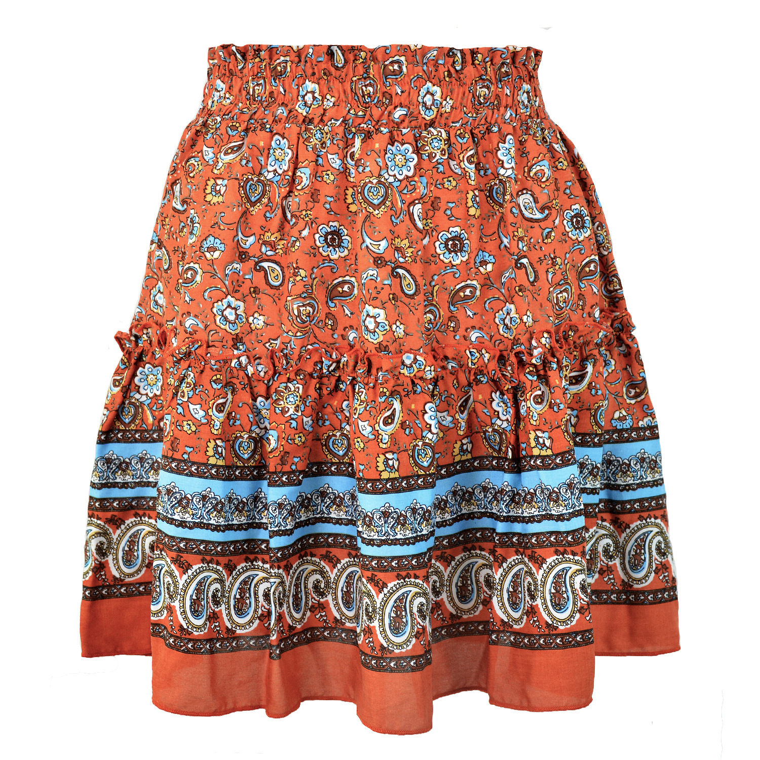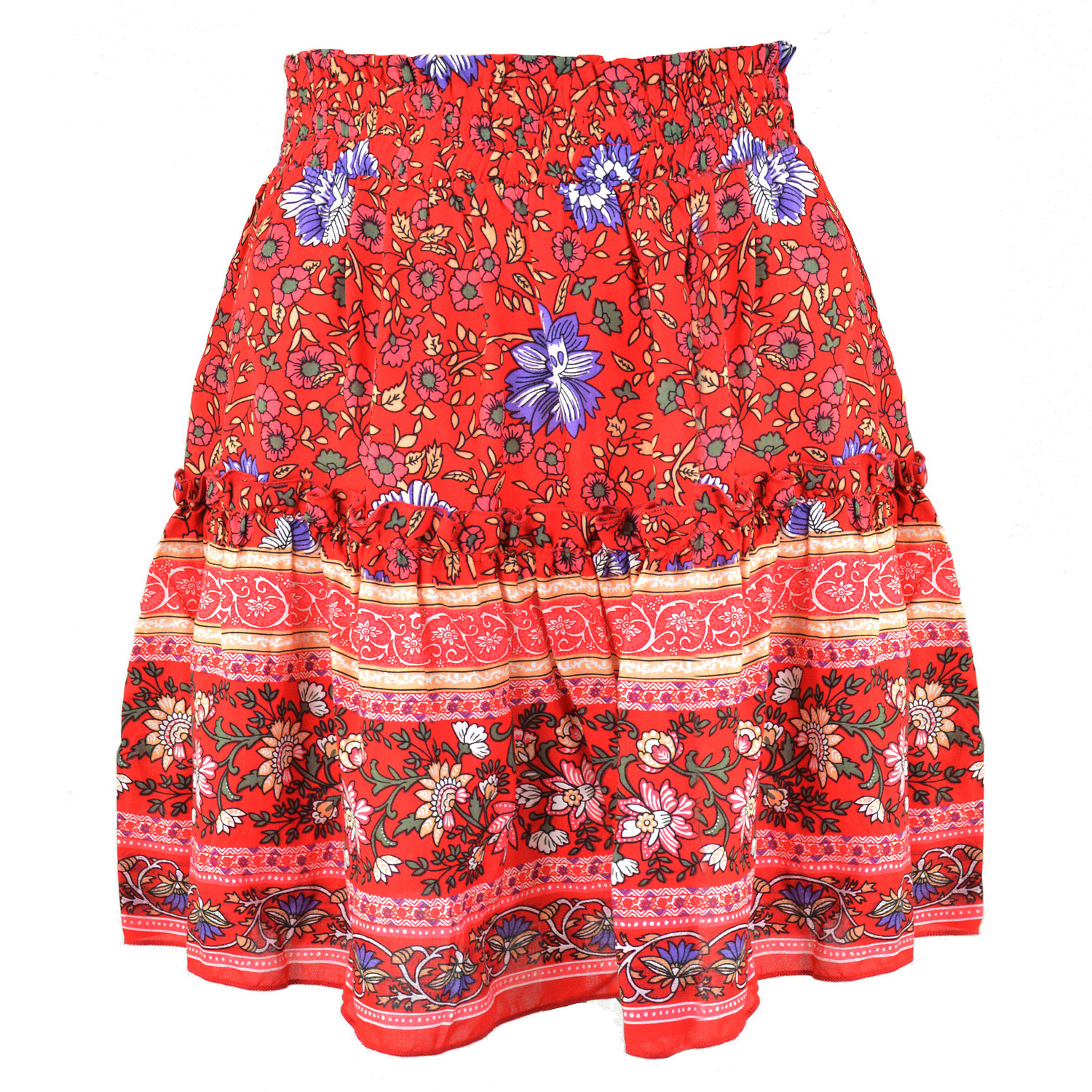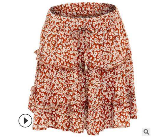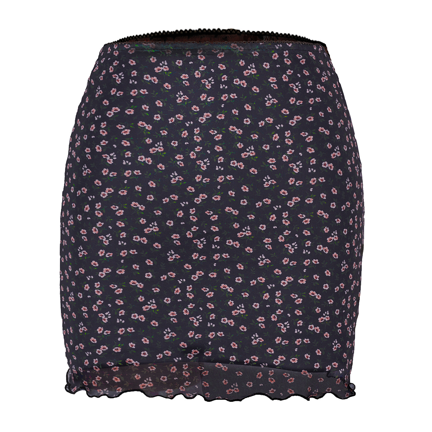 Women's Chiffon Floral Printed High Waist Skirts Casual Streetwear Lady Zipper Mini Skirt WDC6626